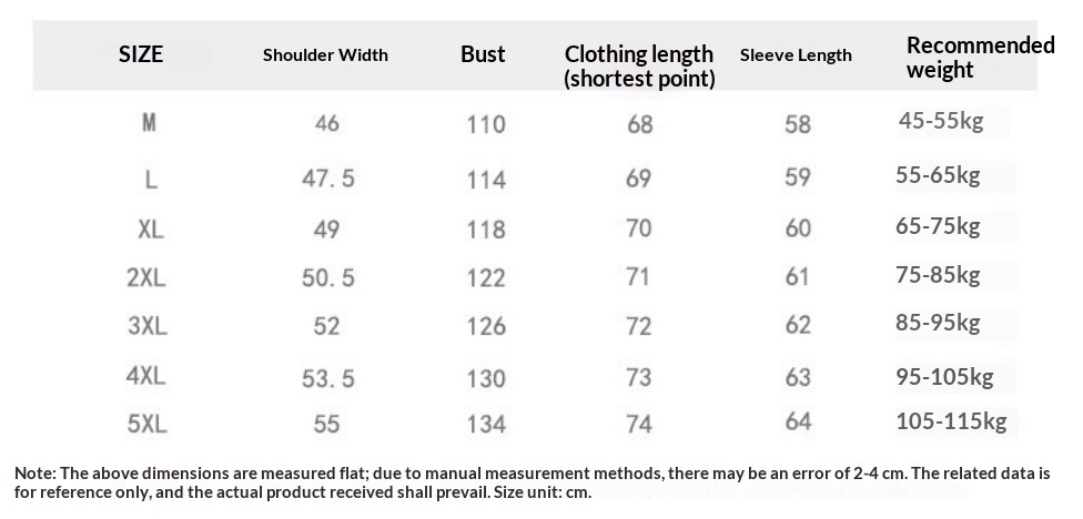Size: M, L, XL, XXL, XXXL, 4XL, 5XL