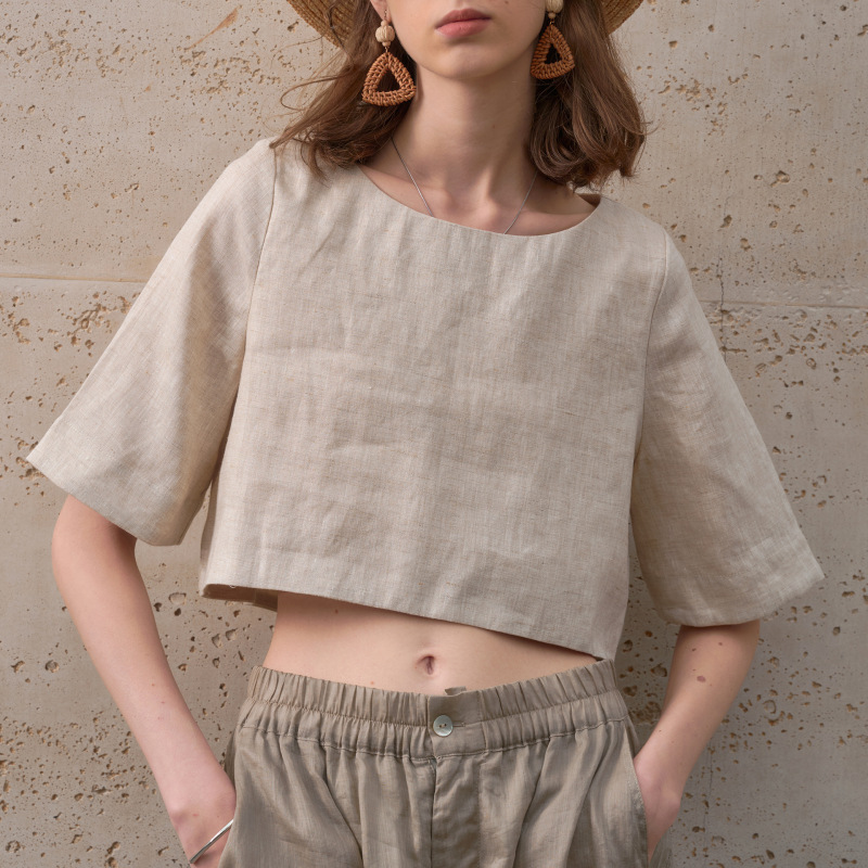 Loose-fitting Round-neck Mid-sleeve Summer Euro-American Crop Top