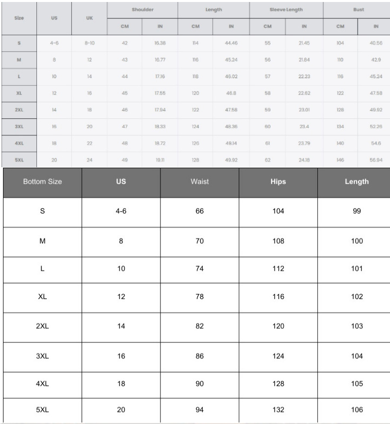 Sizes: S, M, L, XL, XXL, XXXL, XXXXL, 5XL