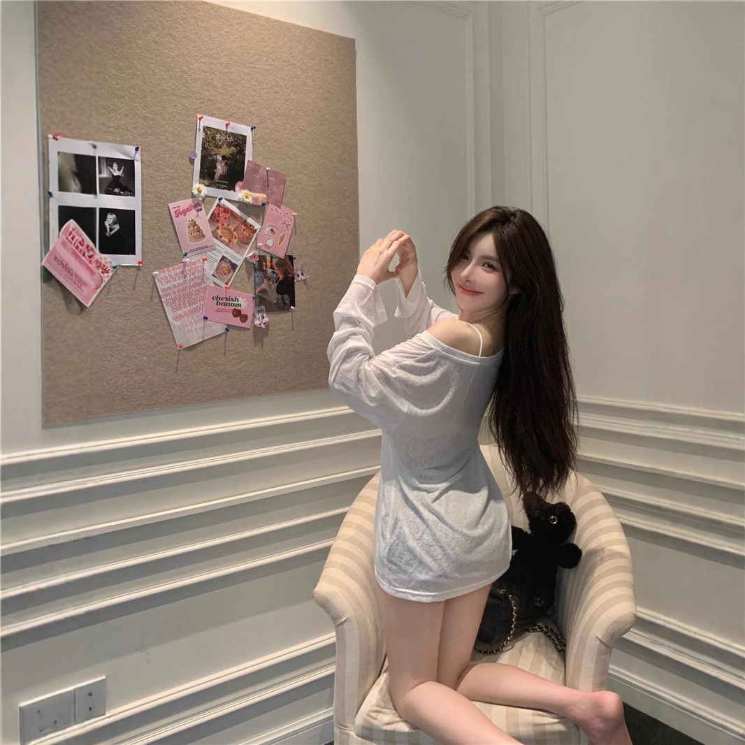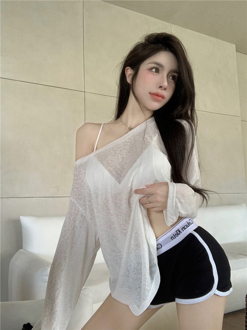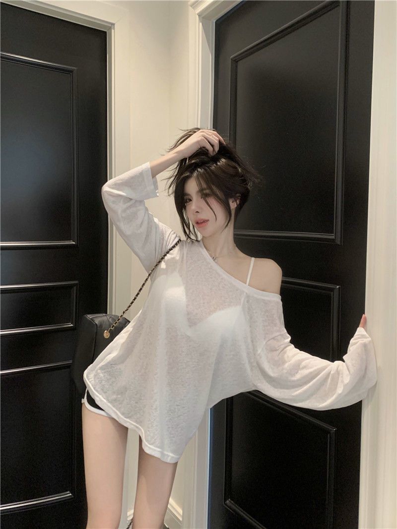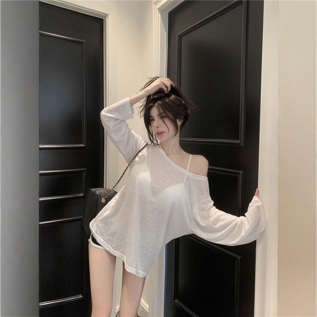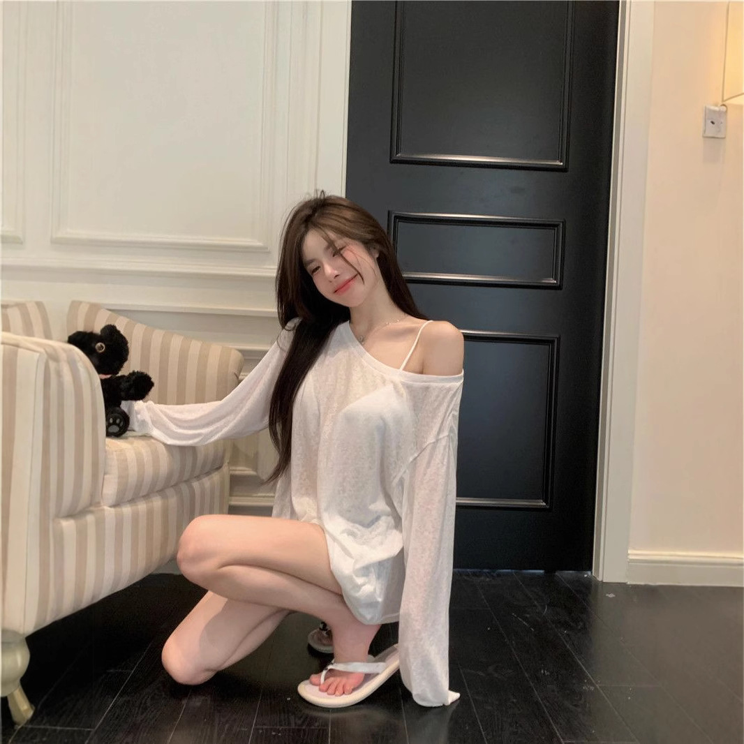Loose-fitting UV-protective Ice-silk Long-sleeve T-shirt For Sun Protection