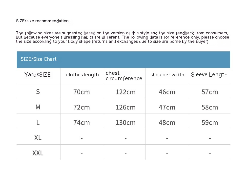 1. Asian sizes are 1 to 2 sizes smaller than European and American people. Choose the larger size if your size between two sizes. Please allow 2-3cm differences due to manual measurement. 2. Please check the size chart carefully before you buy the item, if you don't know how to choose size, please contact our customer service. 3.As you know, the different computers display colors differently, the color of the actual item may vary slightly from the following images.