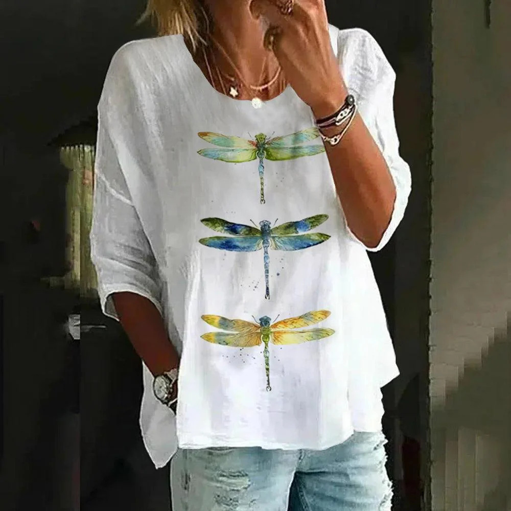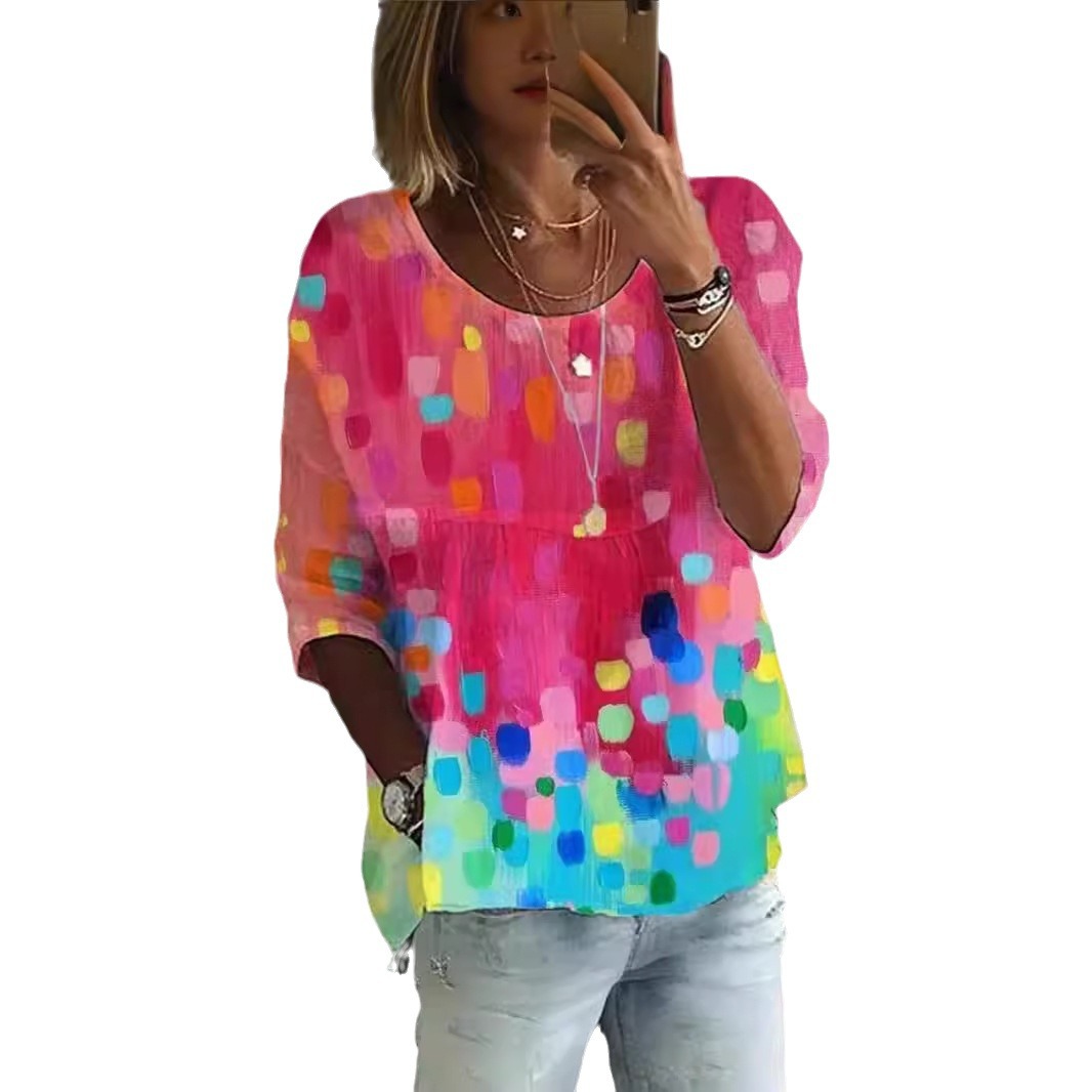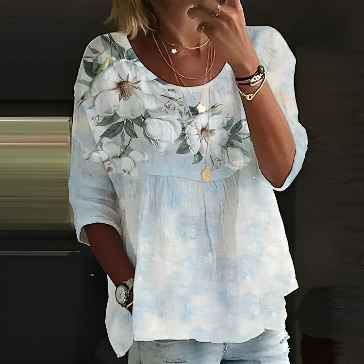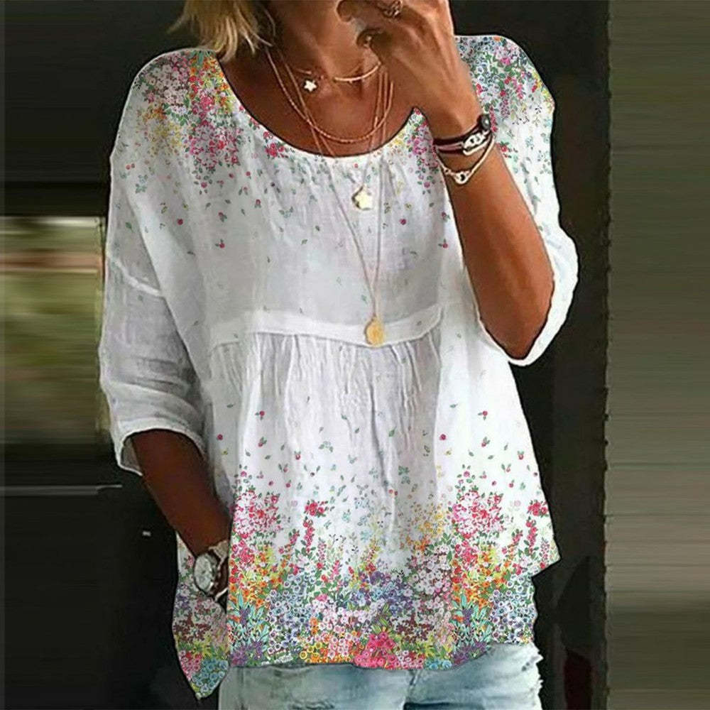 Loose Floral Print Casual Half Sleeve T-shirt For Women