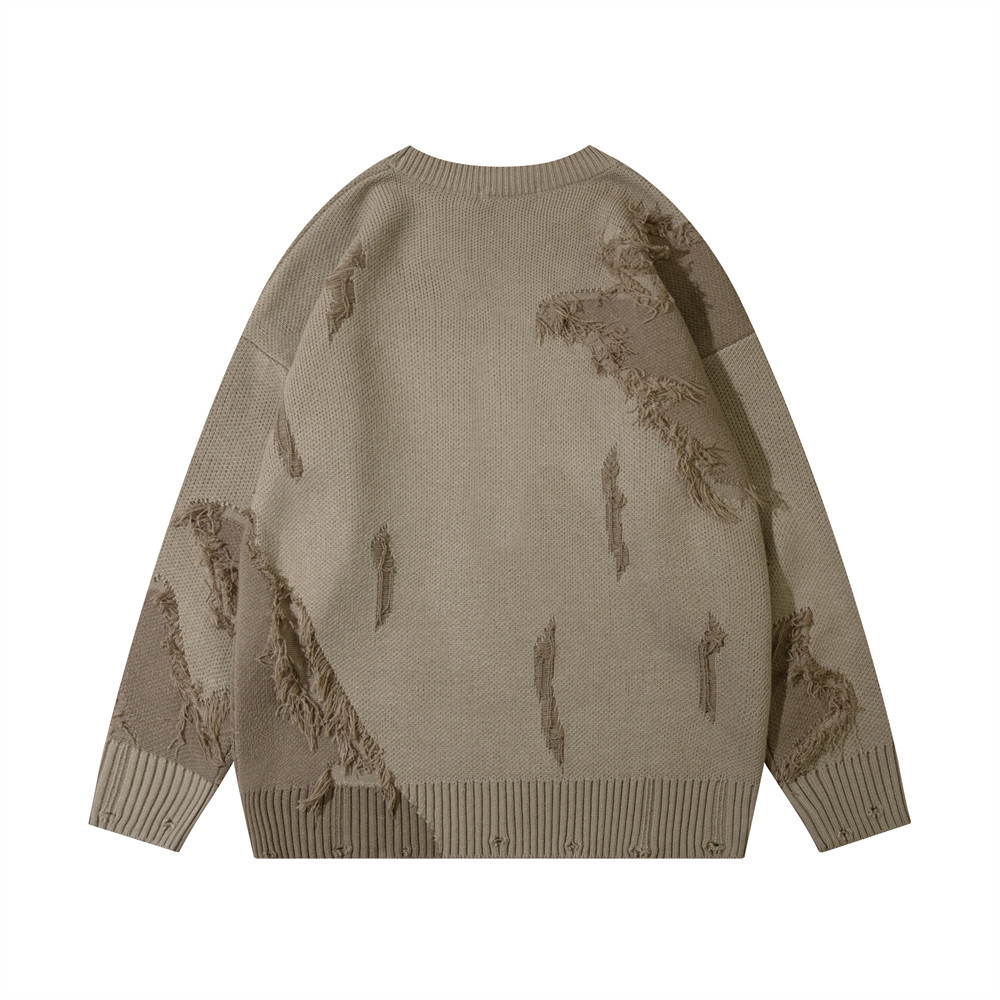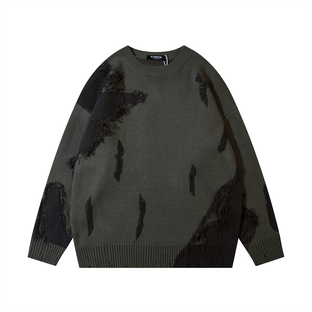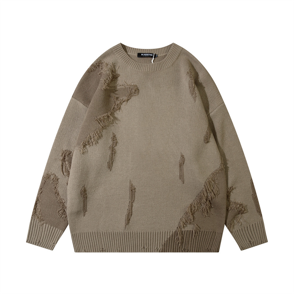 Loose Fur Hem Long Sleeve Round Neck Pullover Sweater