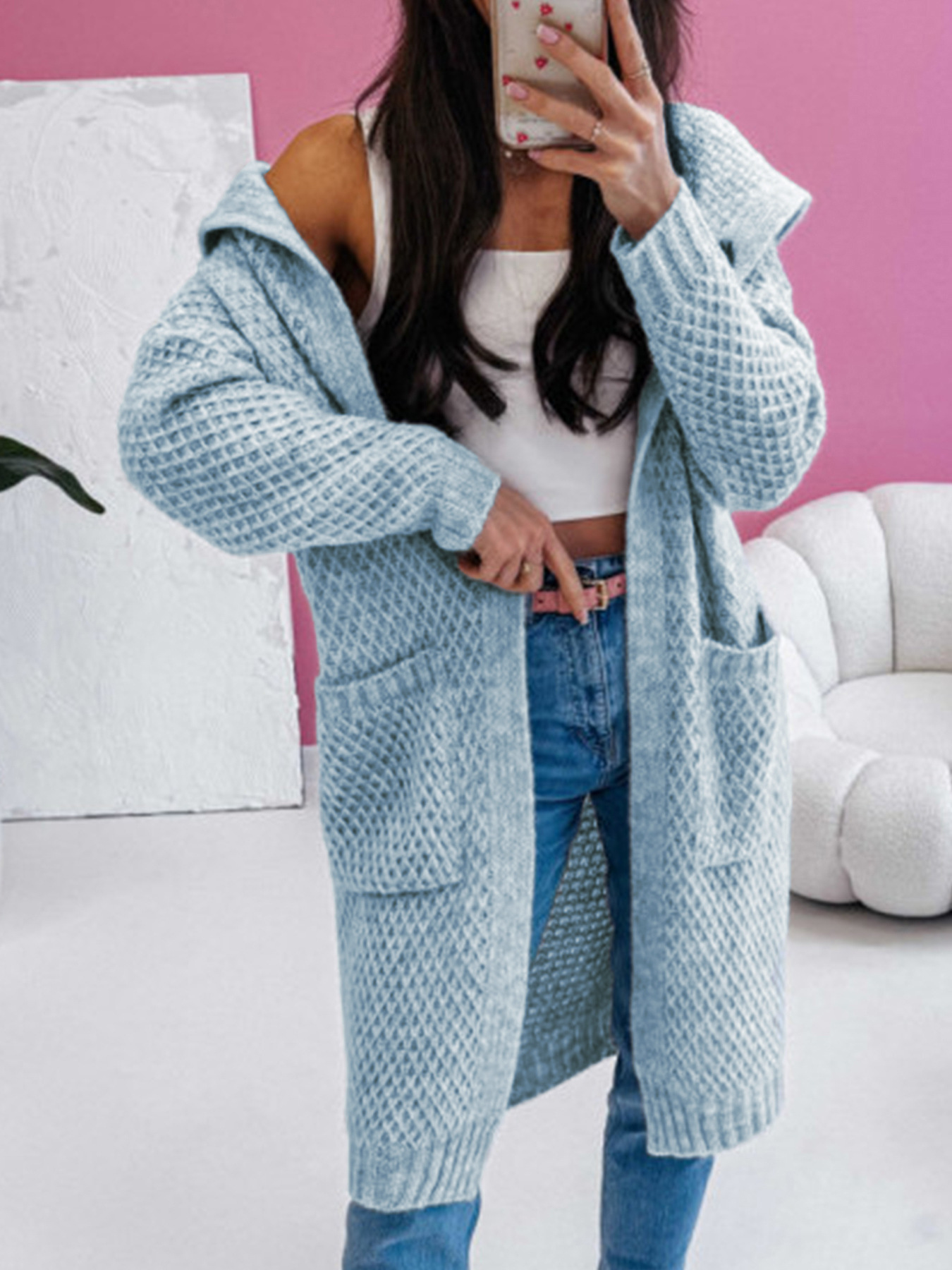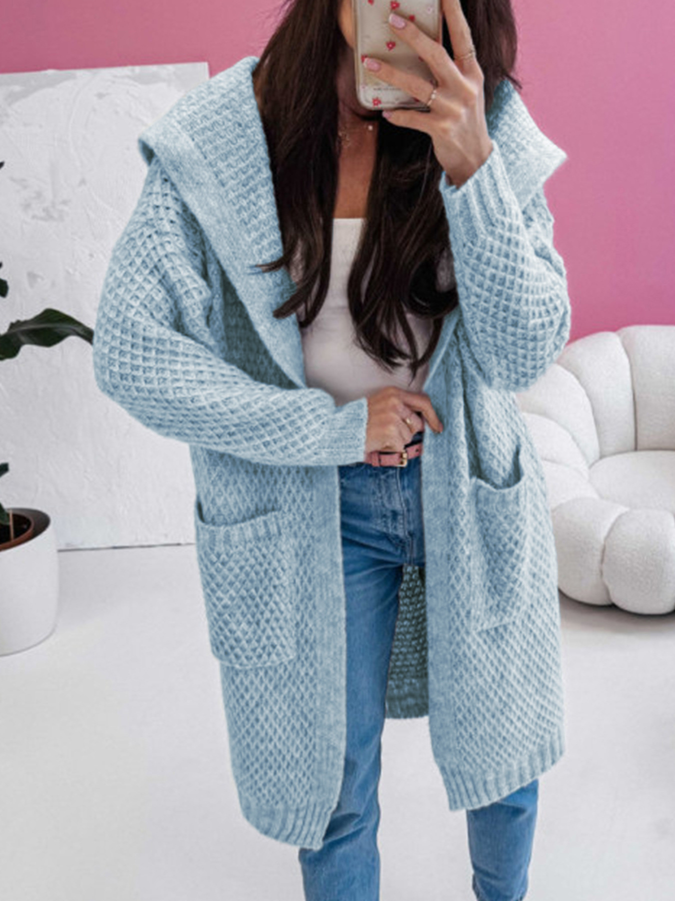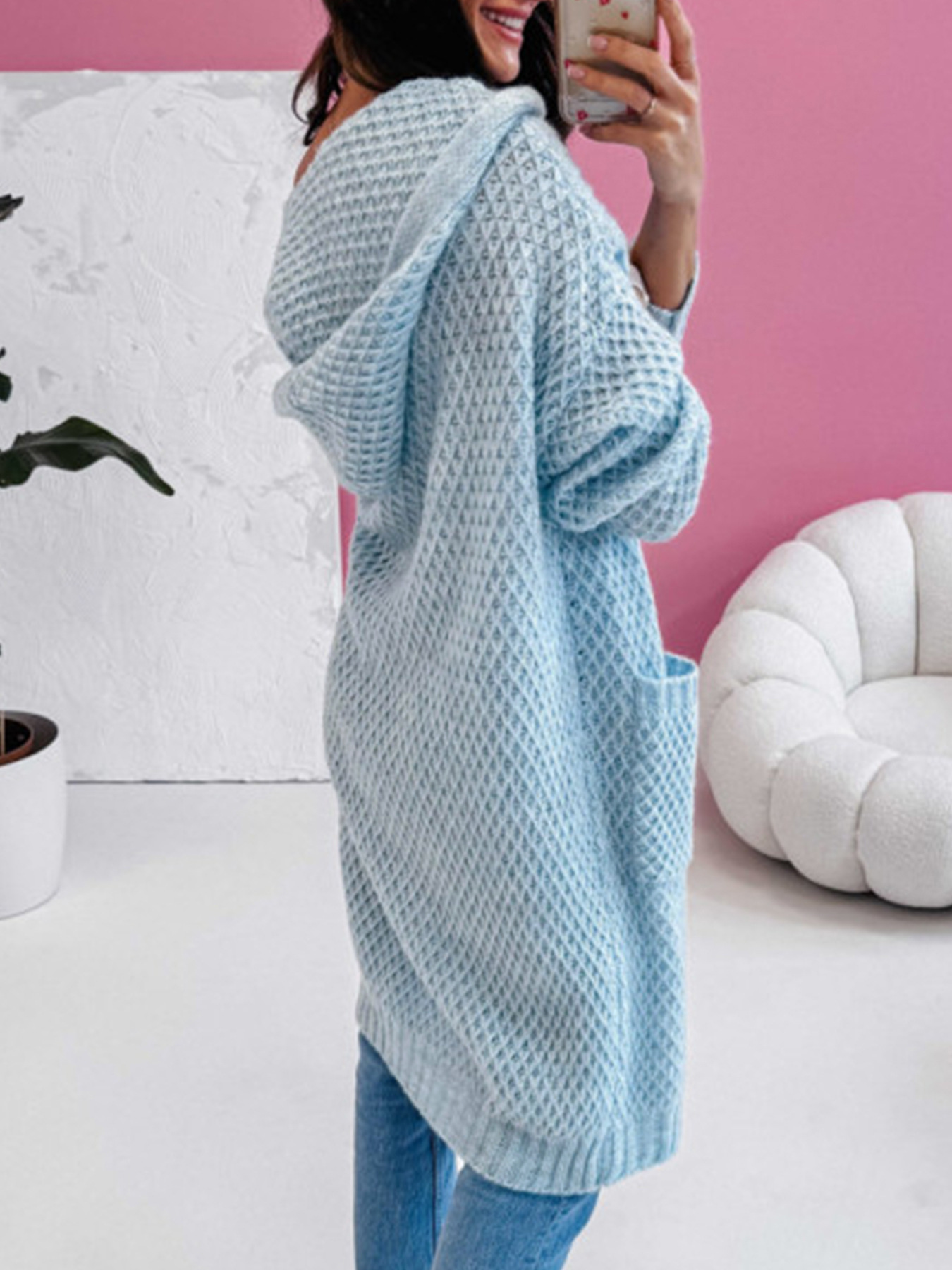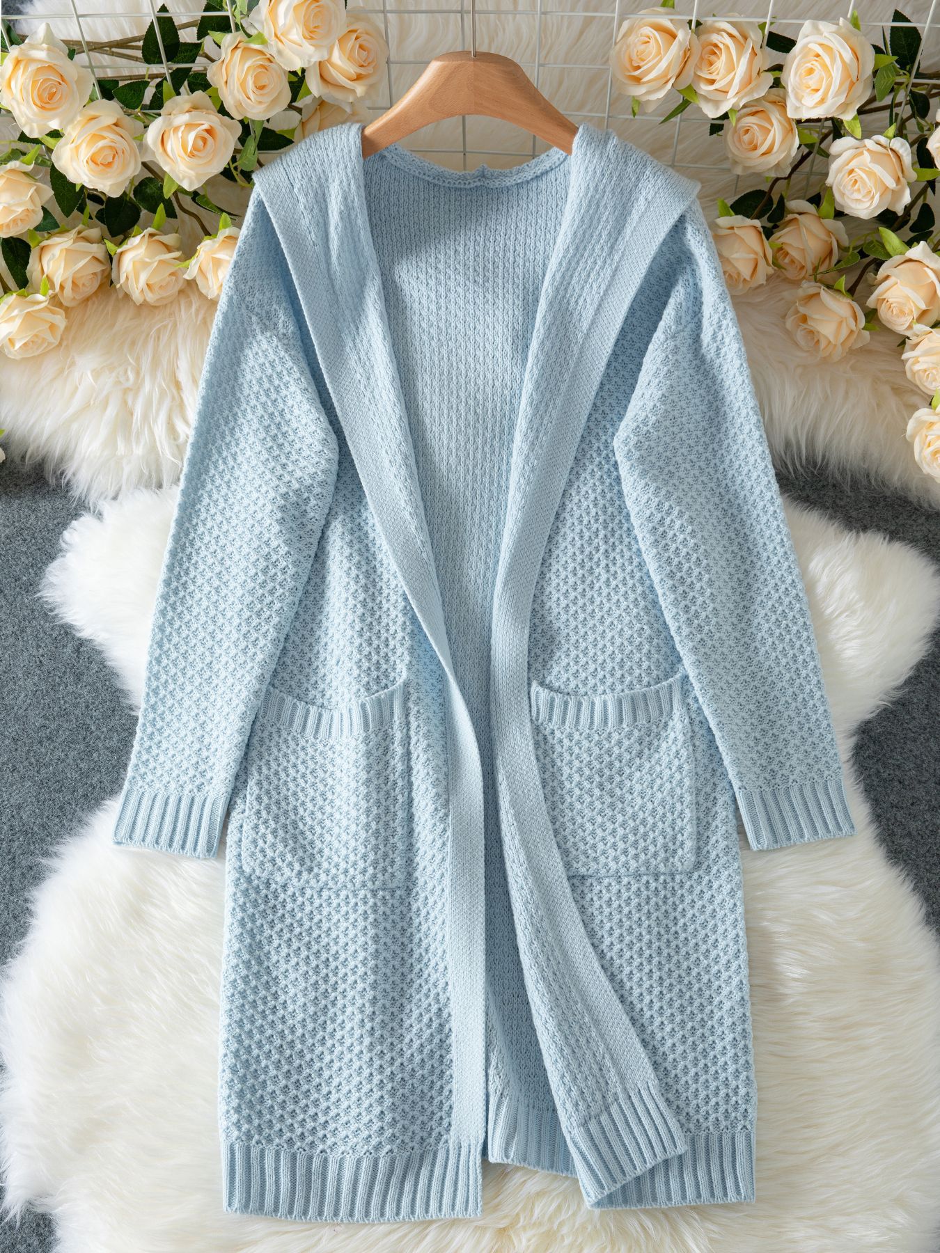 Loose Hooded Long Pocket Knitted Cardigan Jacket