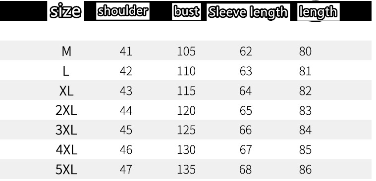 Size: M, L, XL, 2 XL, 3 XL, 4 XL, 5 XL