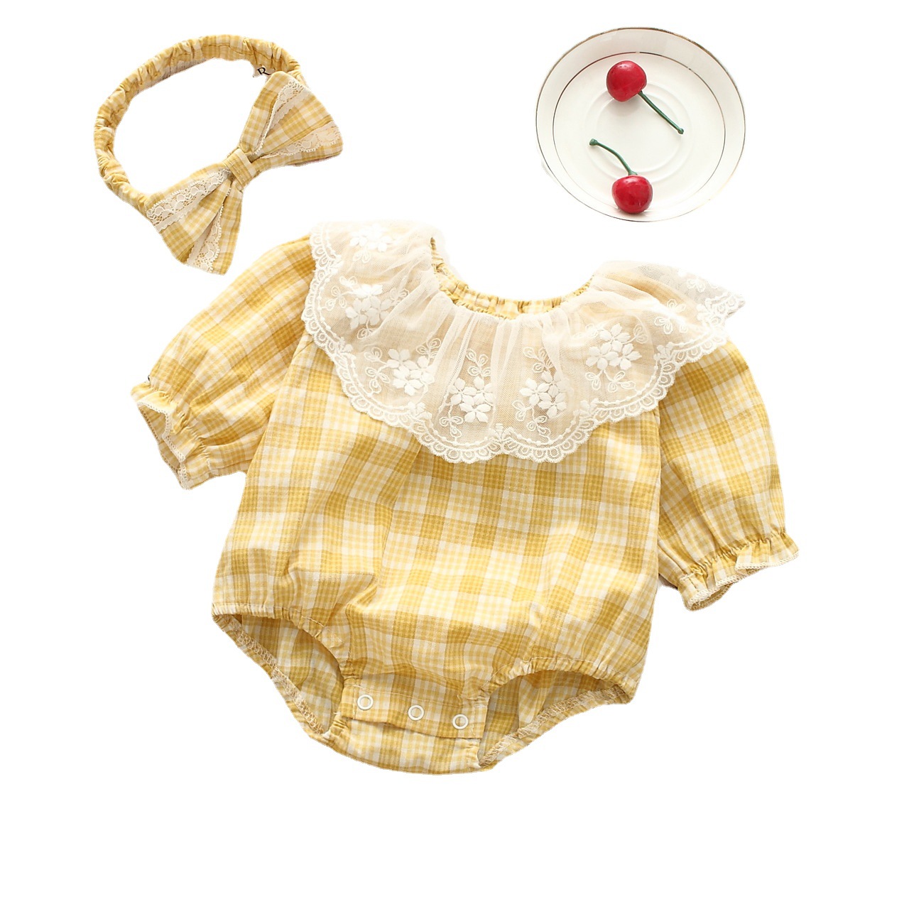 Color: gray grid long-sleeve jumpsuit hair band, yellow and white plaid long-sleeve jumpsuit hair band, pink and white plaid long-sleeve jumpsuit hair band, green and white plaid long-sleeve jumpsuit hair band