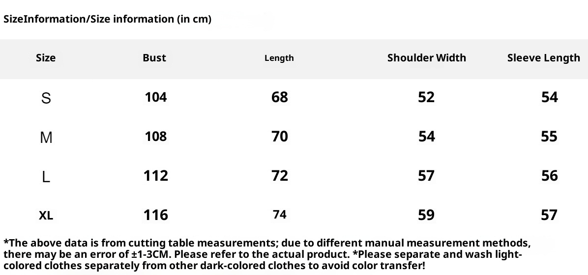 1. Asian sizes are 1 to 2 sizes smaller than European and American people. Choose the larger size if your size between two sizes. Please allow 2-3cm differences due to manual measurement. 2. Please check the size chart carefully before you buy the item, if you don't know how to choose size, please contact our customer service. 3.As you know, the different computers display colors differently, the color of the actual item may vary slightly from the following images.