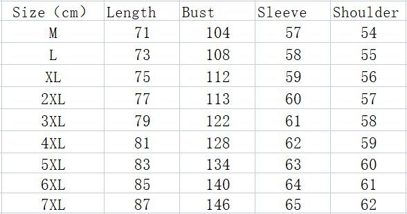 Size information: M, XL, 2XL, 3XL, 4XL, 5XL, 6XL, 7XL