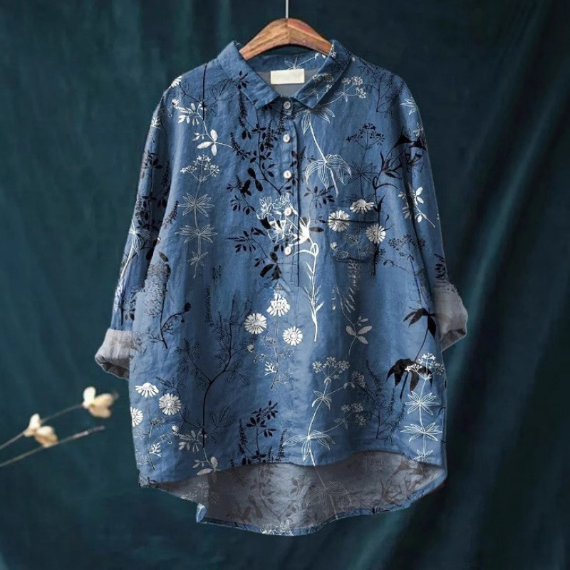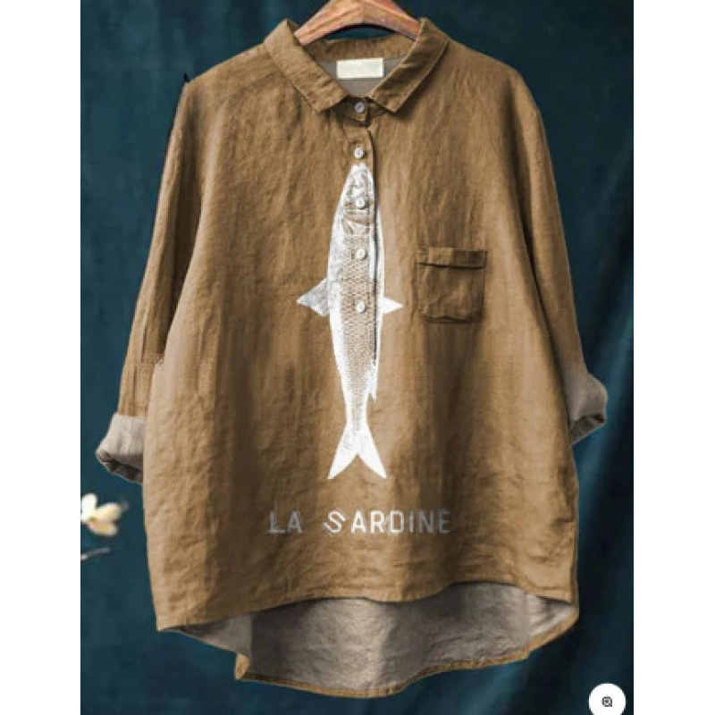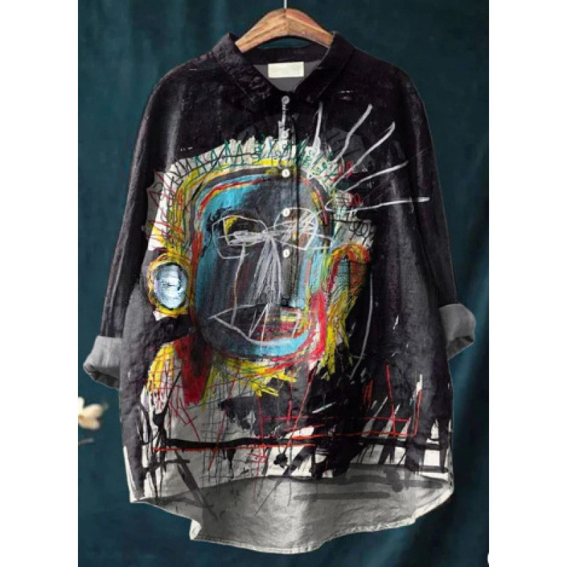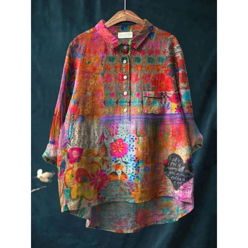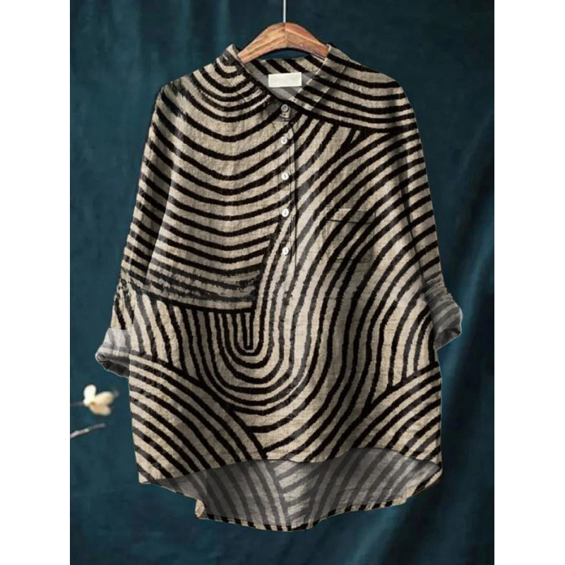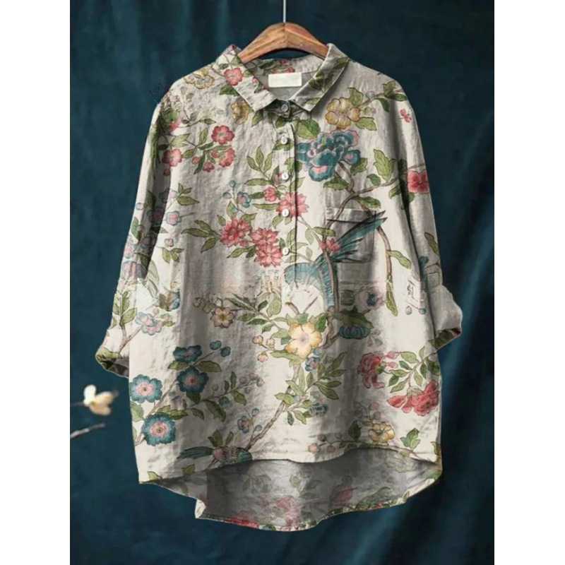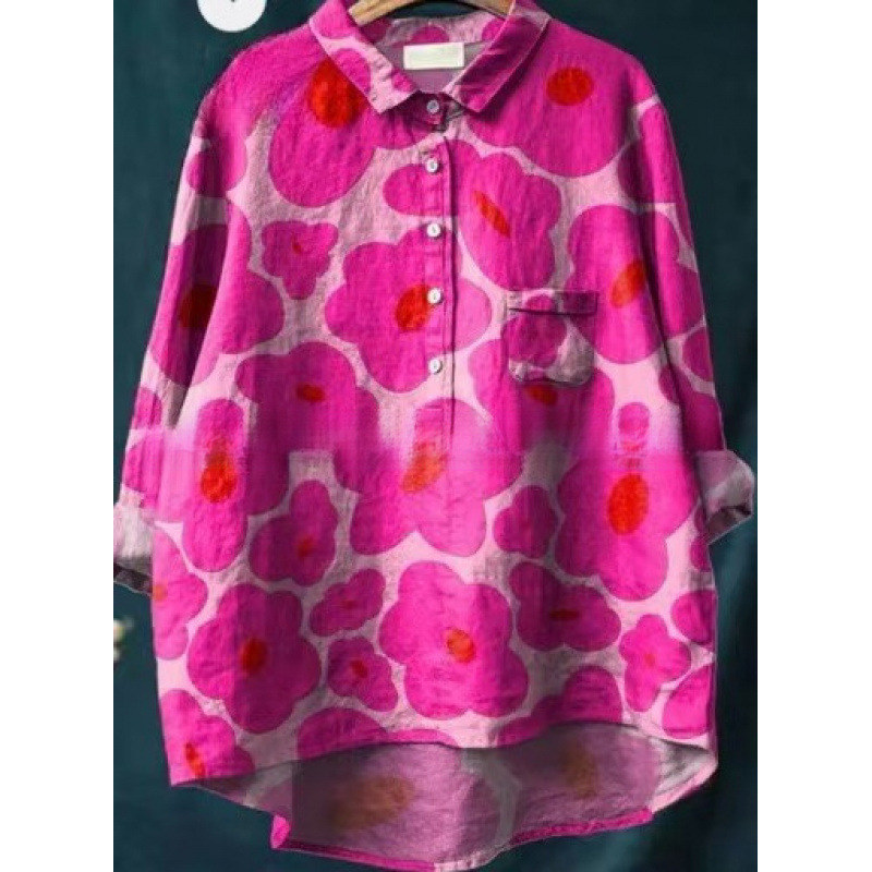 Loose Printed Crew Neck Casual Plus Size Women's Shirt