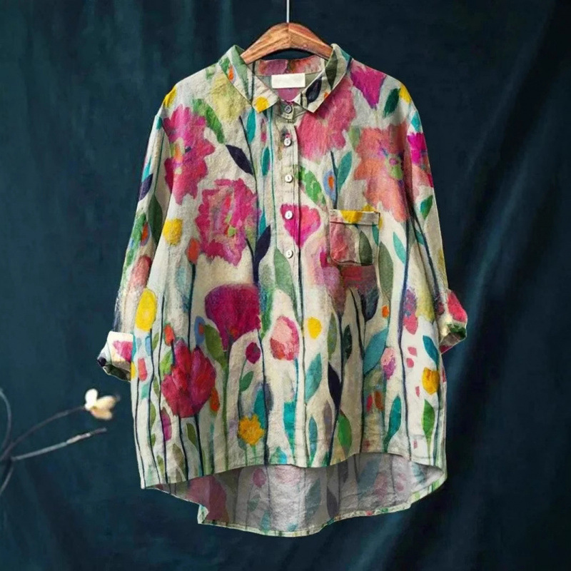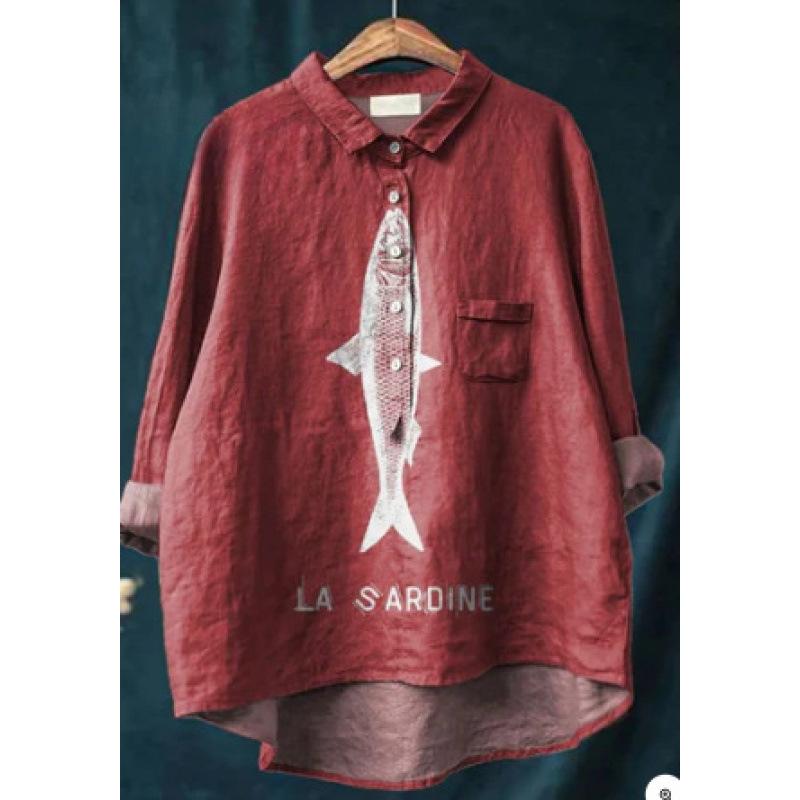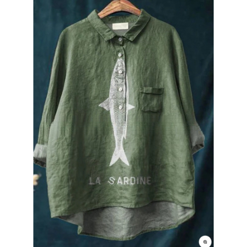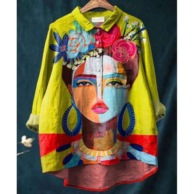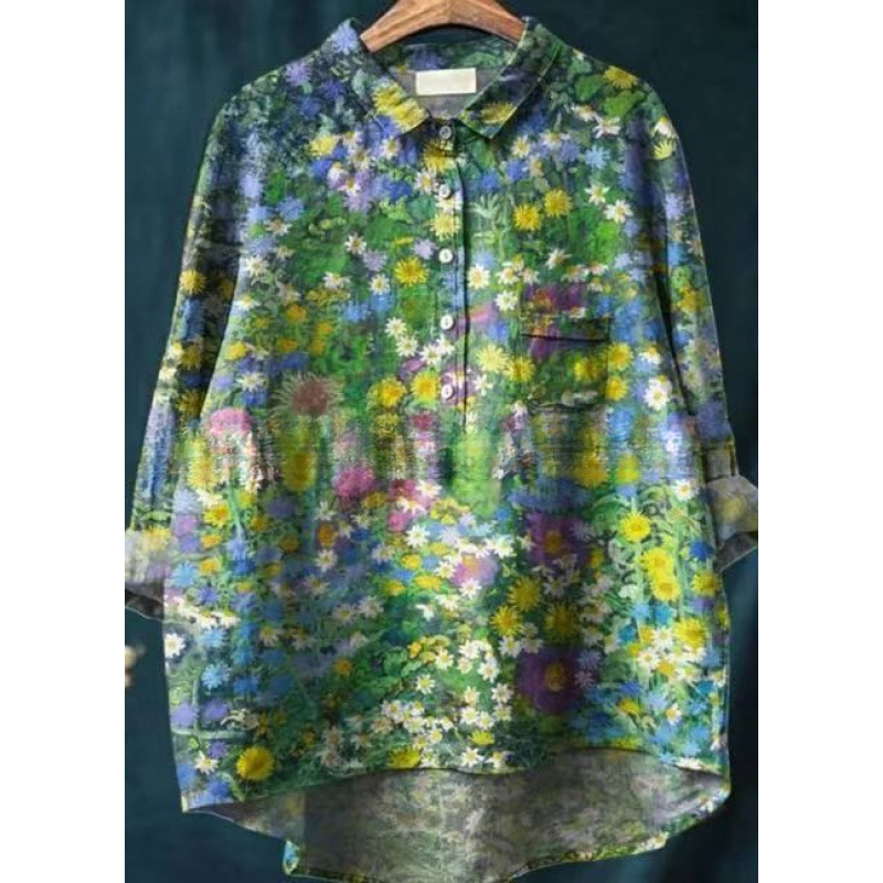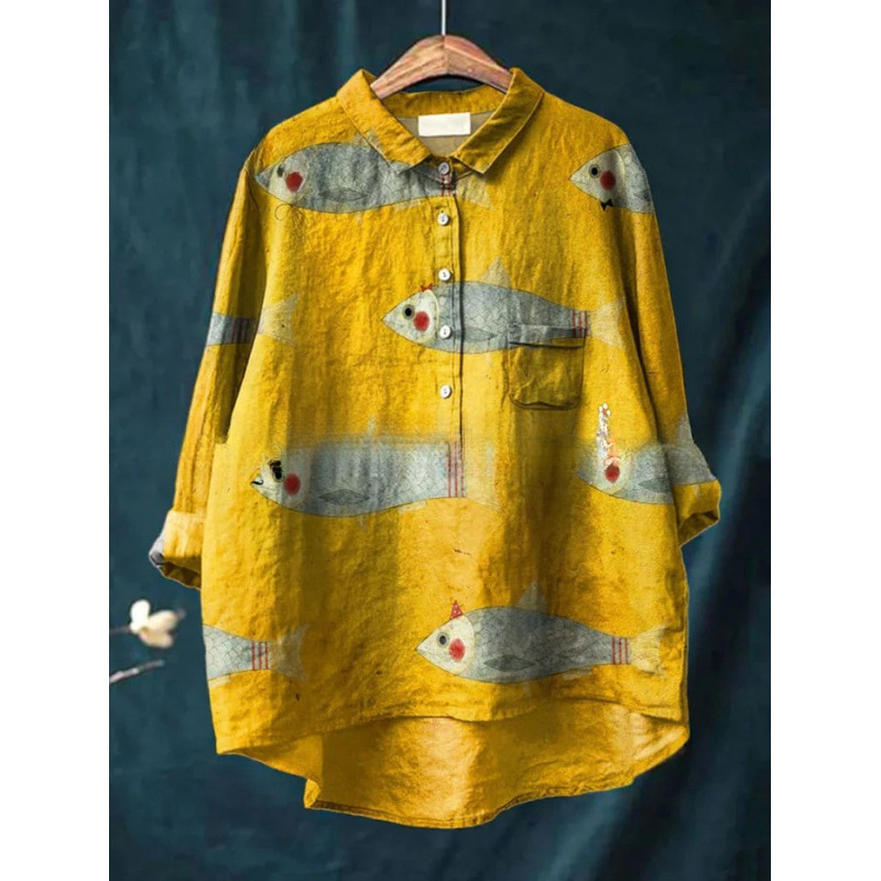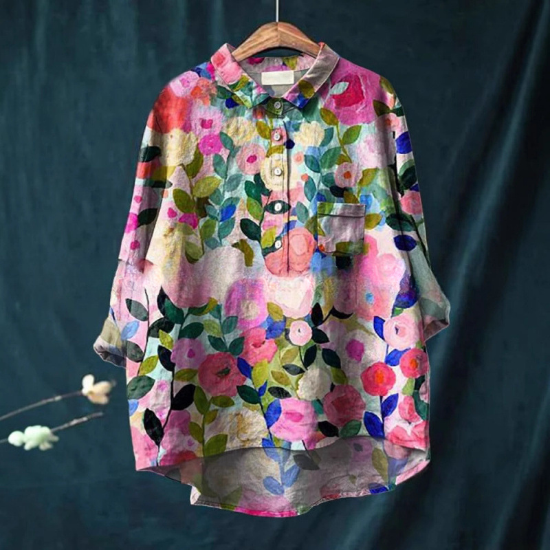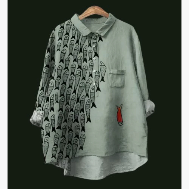 Loose Printed Crew Neck Casual Plus Size Women's Shirt