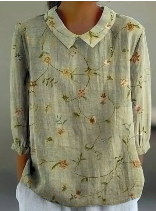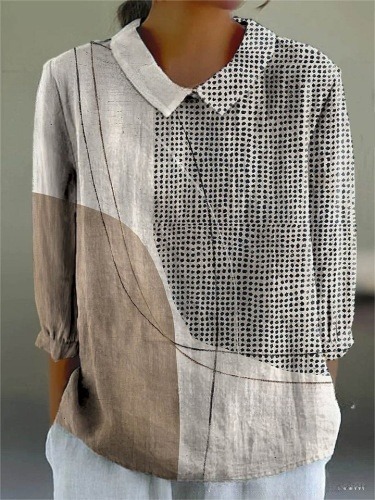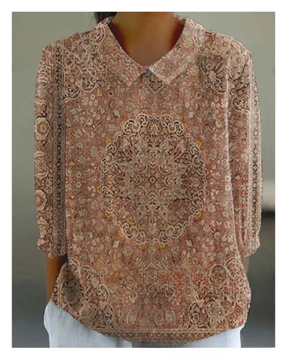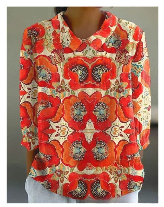 Loose Printed Crew Neck Casual Plus Size Women's Shirt