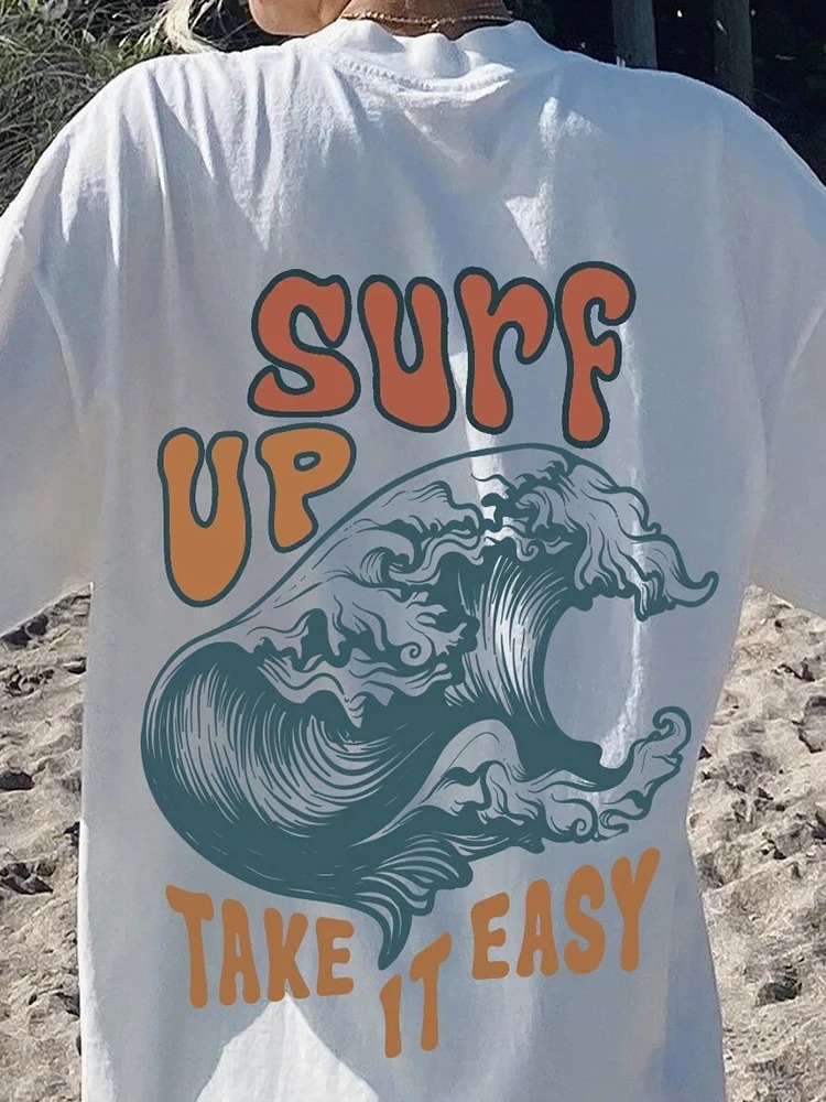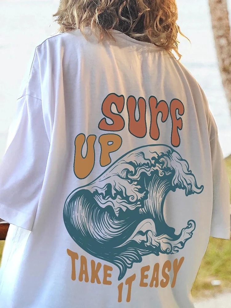Loose Printed Round Neck Short Sleeve Women's T-shirt