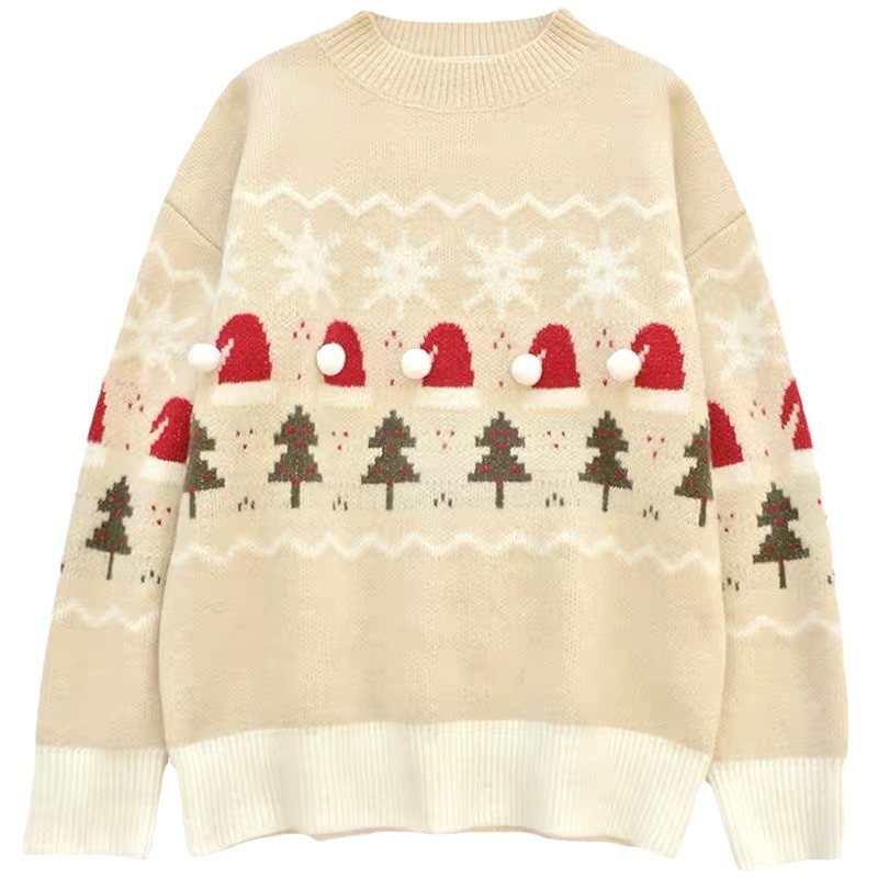 Product information:Pattern: Christmas Color: red, black, apricot Size: average size Version: Loose Style: pullover Main fabric composition: acetate fiber Wearing style: pullover Sleeve length: long sleeve