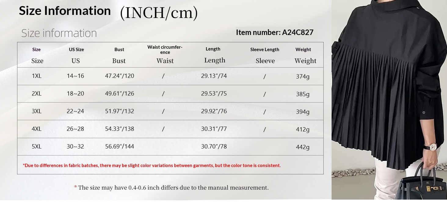 Sizes: 1XL, 2XL, 3XL, 4XL, 5XL
