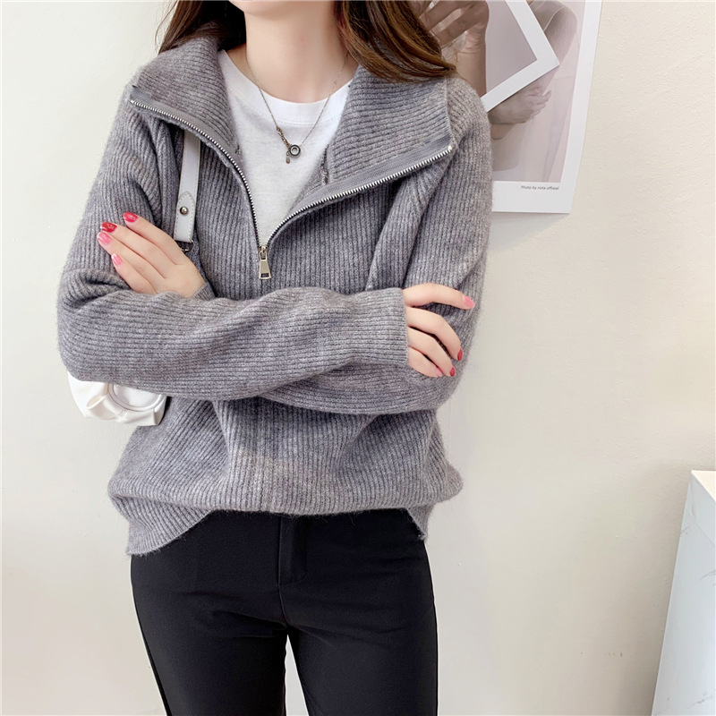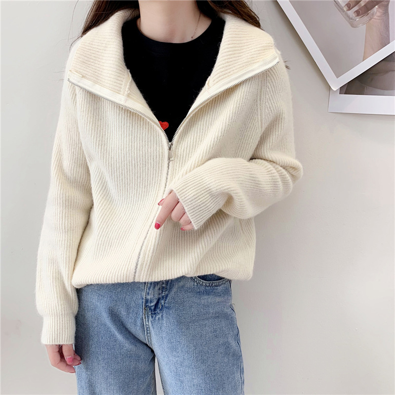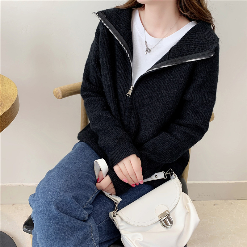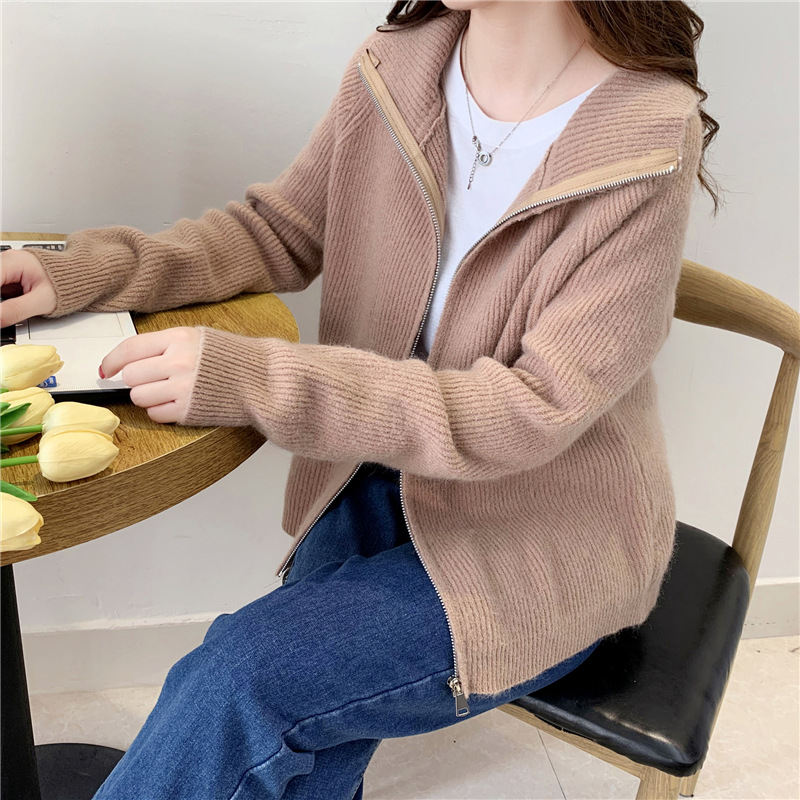 Loose Simple Solid Color Knitted Sweater Jacket Top