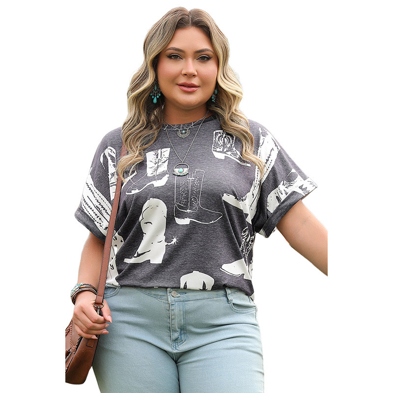 Loose Slim Fit Plus Size Round Neck Short Sleeve T-shirt