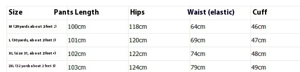 Size: M(29 yards about 2 feet 2),L(30 yards about 2 feet 3),XL(31 yards about 2 feet 4),2XL(32 yards about 2 feet 5)