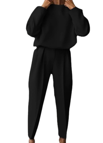 Loose Solid Color Long Sleeve Casual Two-piece Set