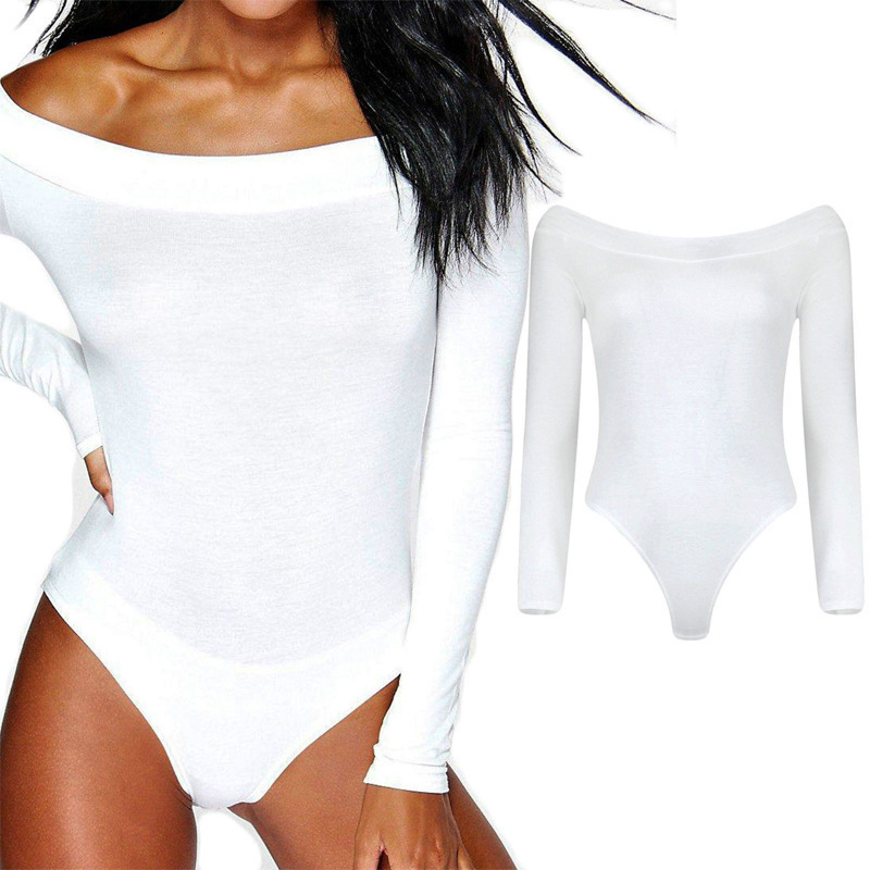 Loose Solid Women Off Shoulder Bodysuit Top Stretch Autumn