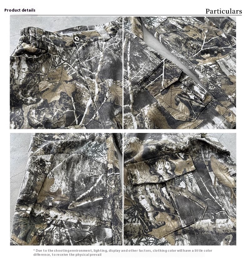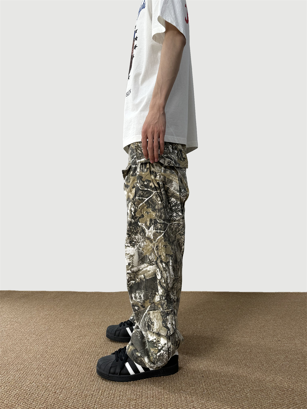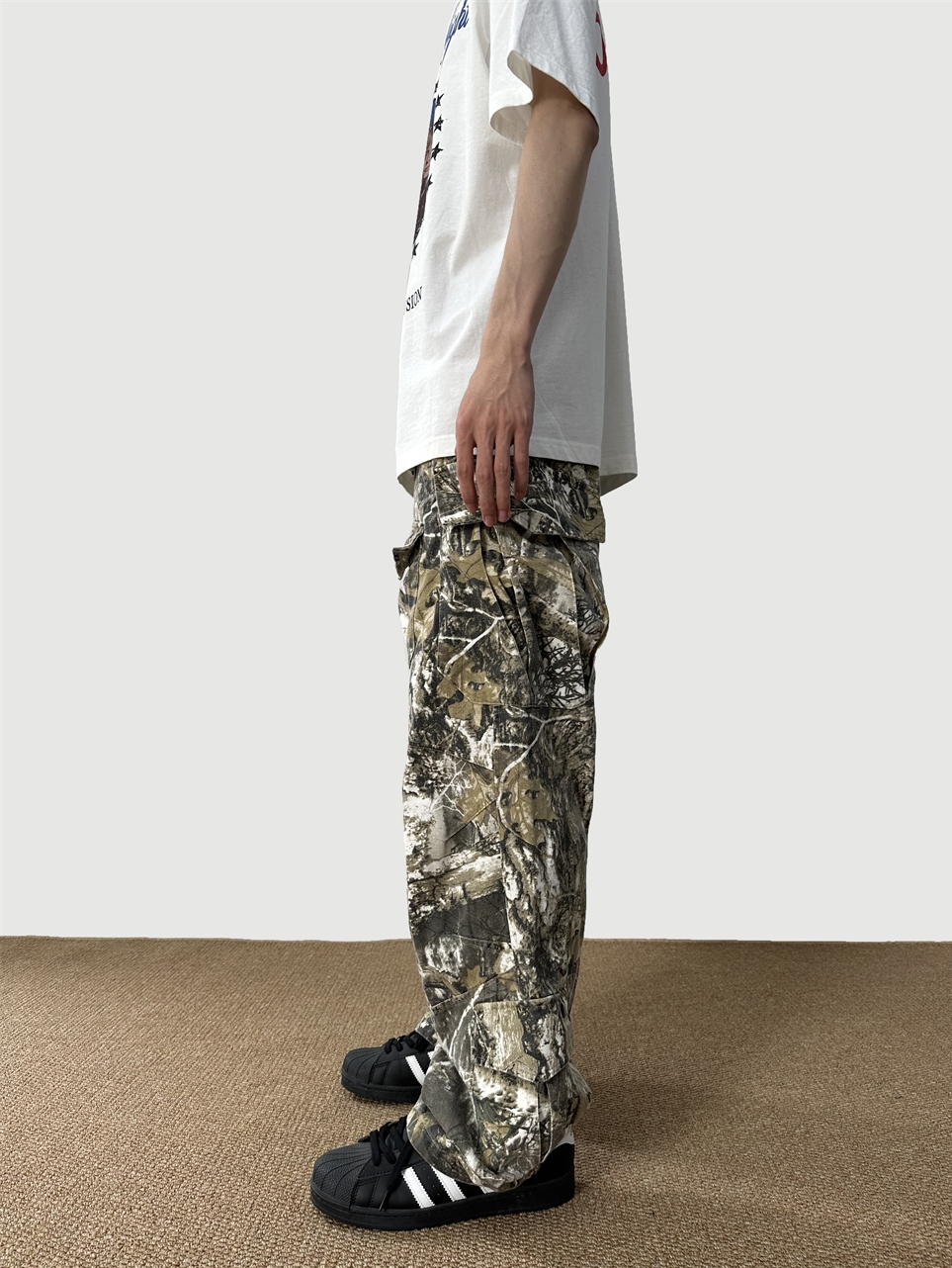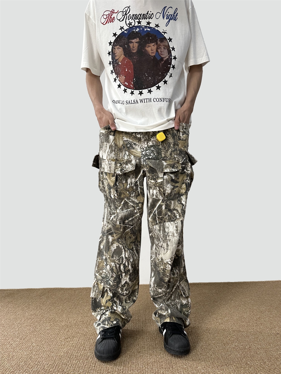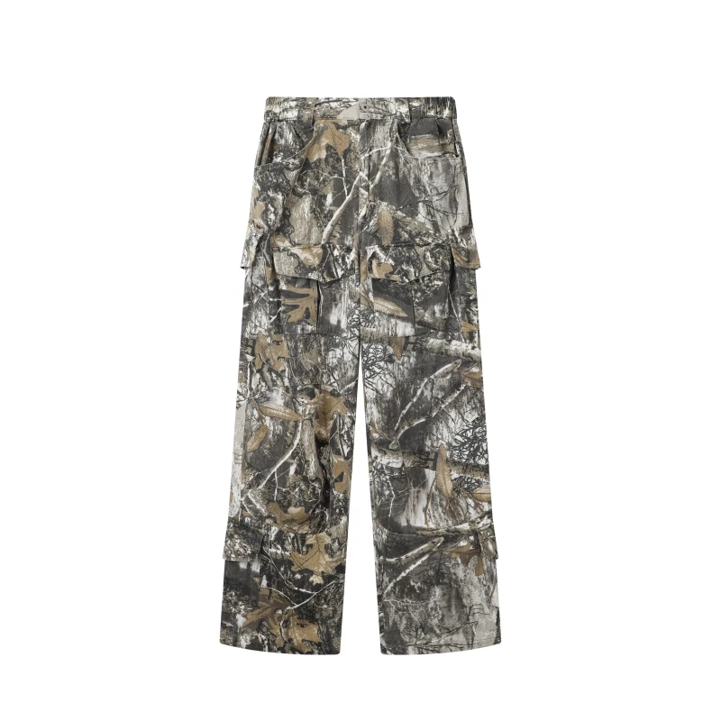 Loose Straight Tree Worn Looking Washed-out Camouflage Printed Overalls