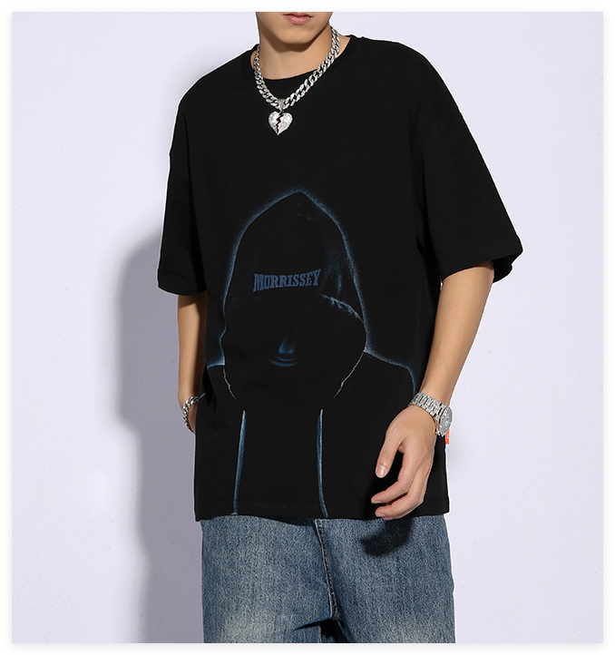 Loose Street Black Printed Round Neck T-shirt