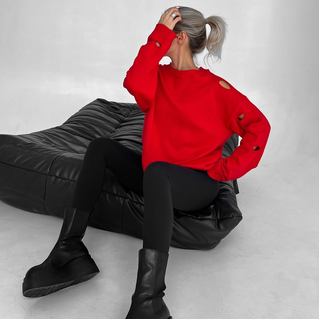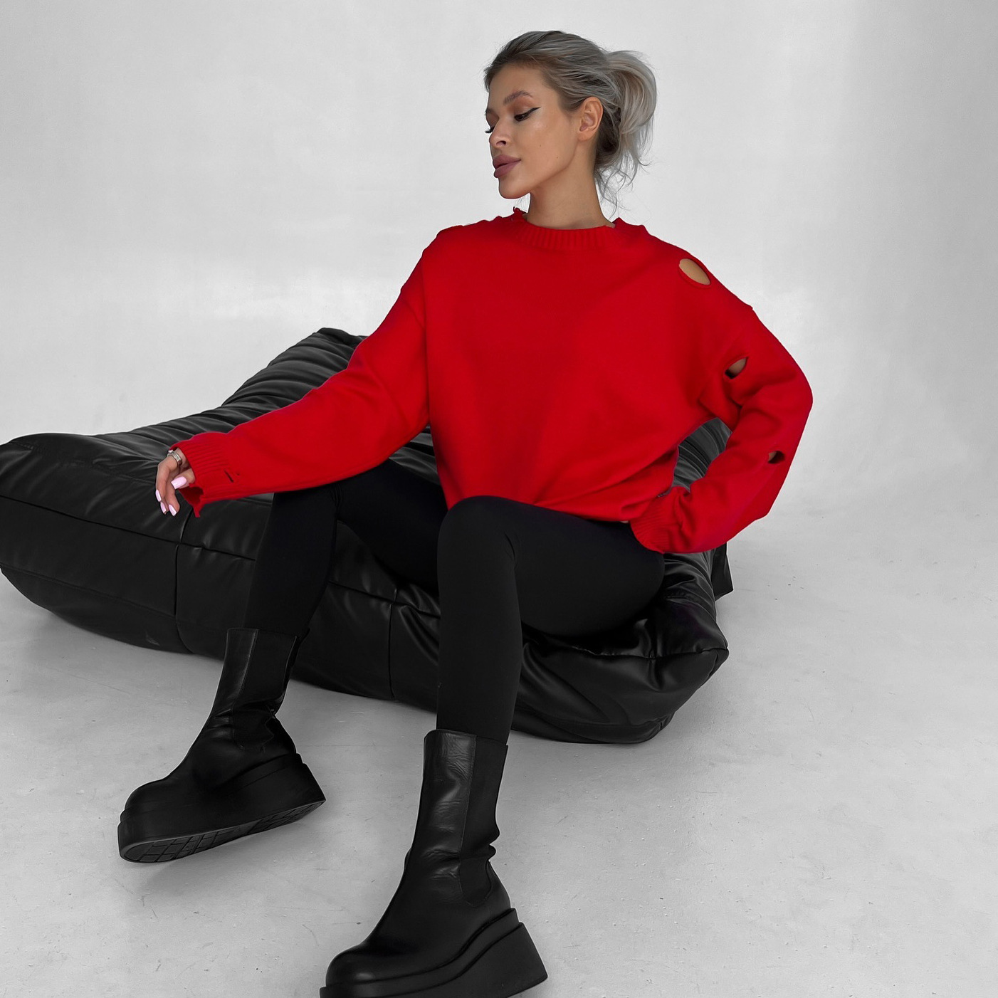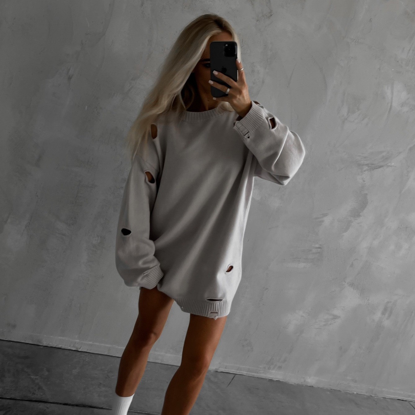 Loose Sweater With Ripped Waste Soil