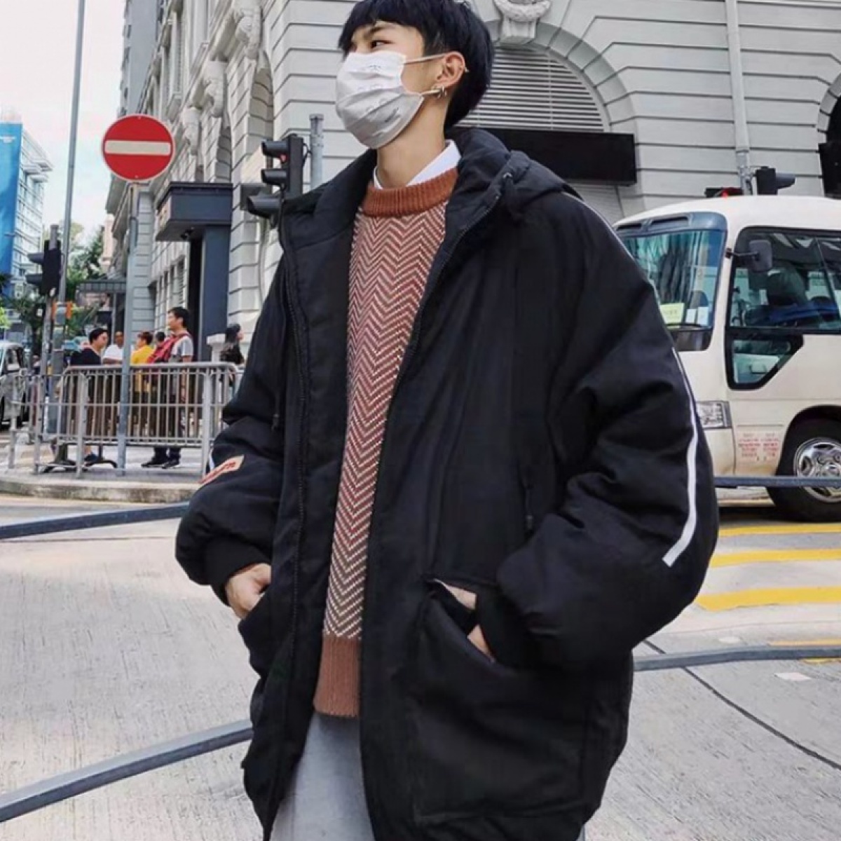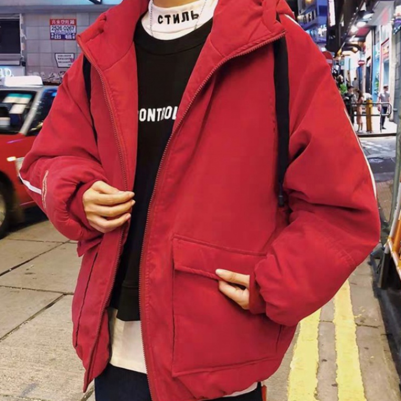 Color classification: black big pocket cotton jacket, beige big pocket cotton jacket, wine red pocket cotton jacket