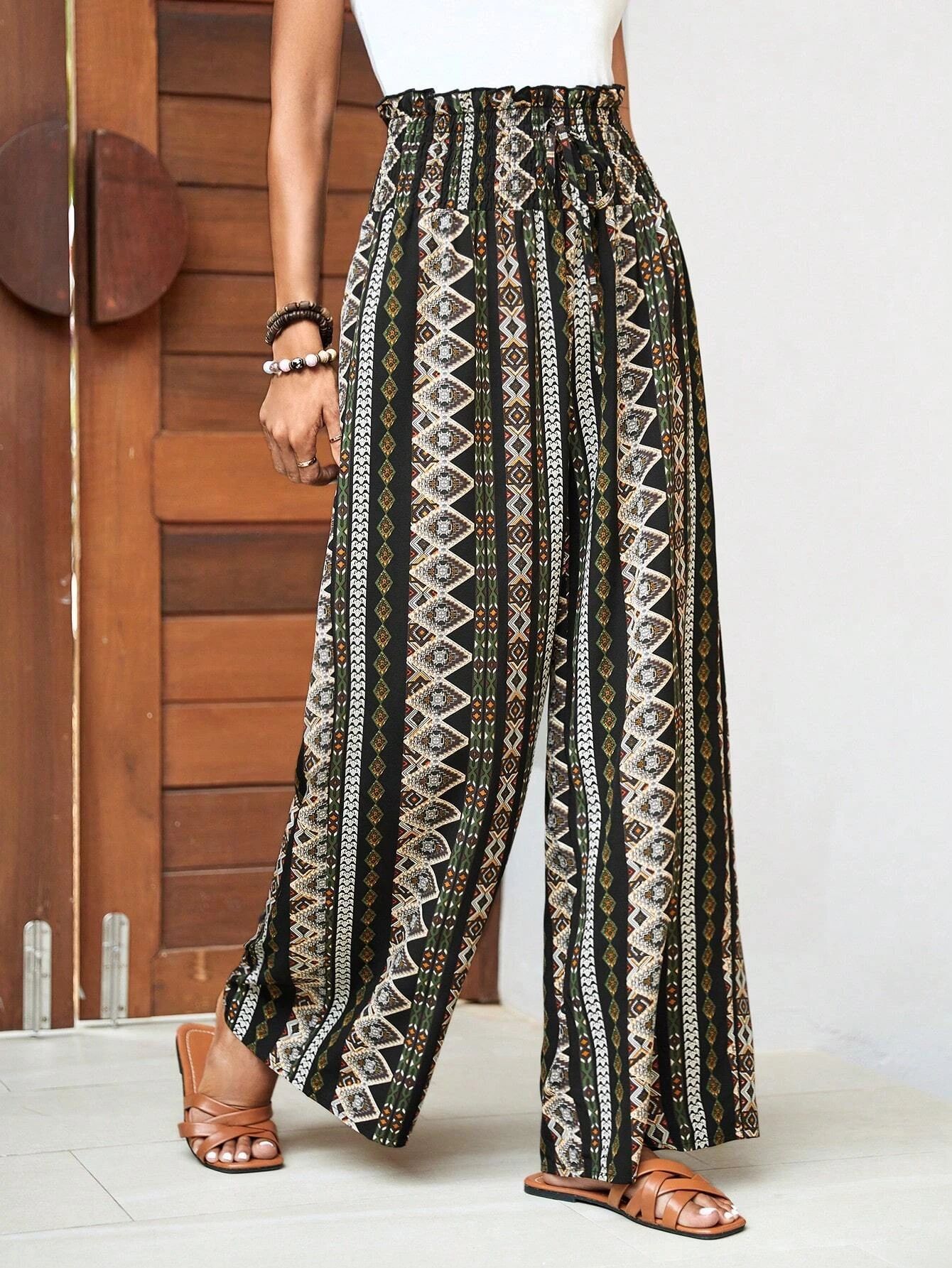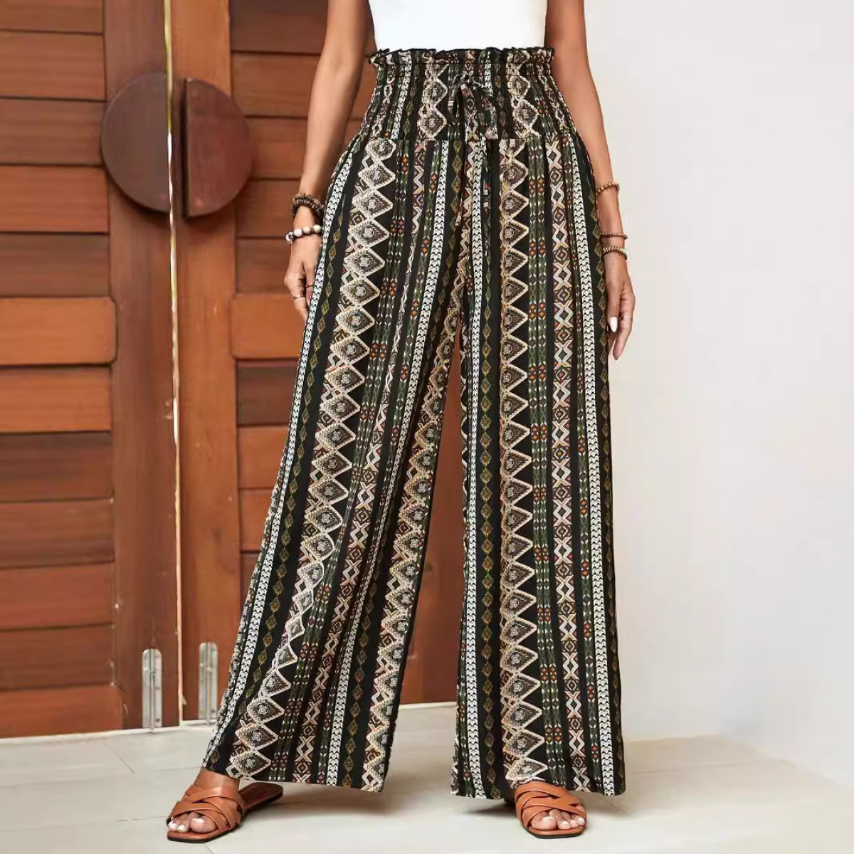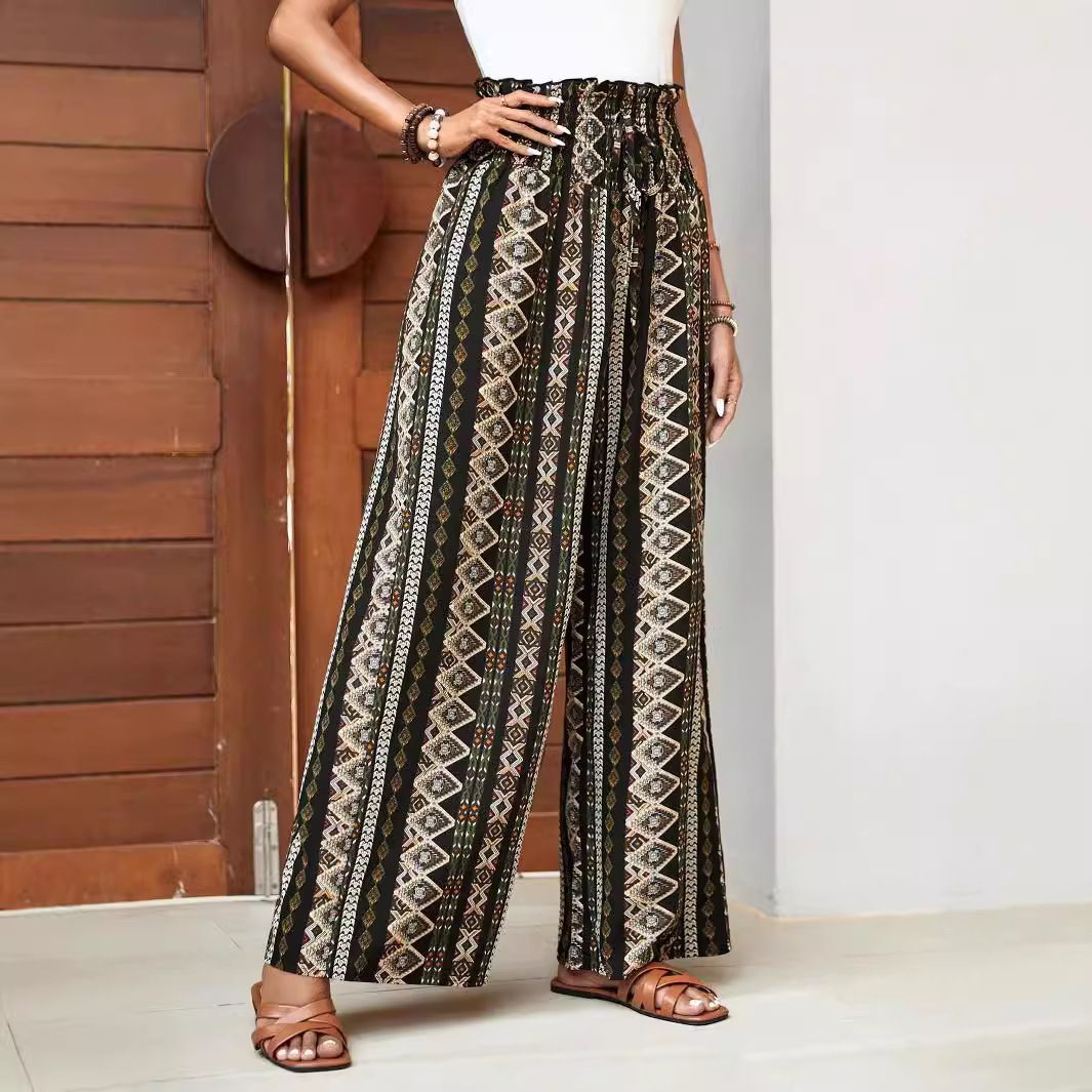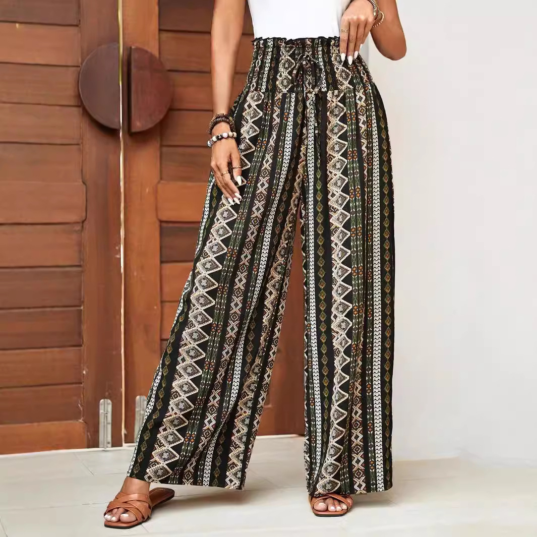 Loose Wide-leg Pants High Waist Print Trousers For Women