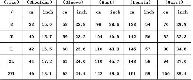 2. Please check the size chart carefully before you buy the item, if you don't know how to choose size, please contact our customer service.