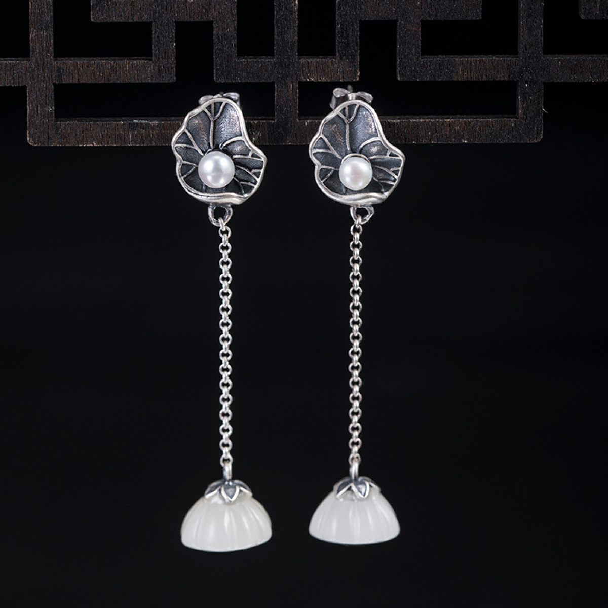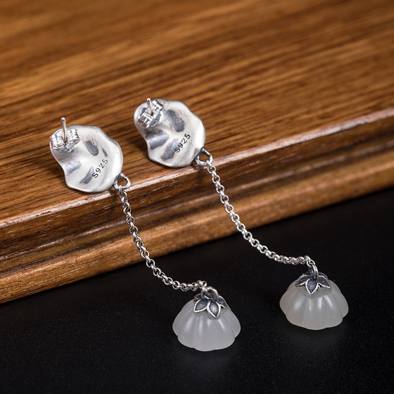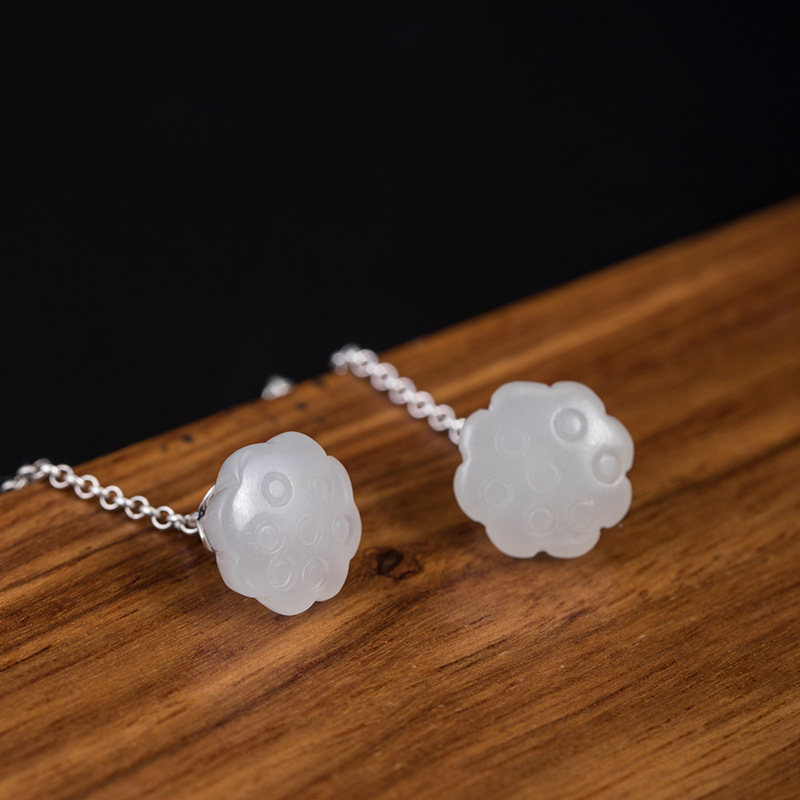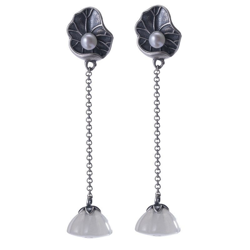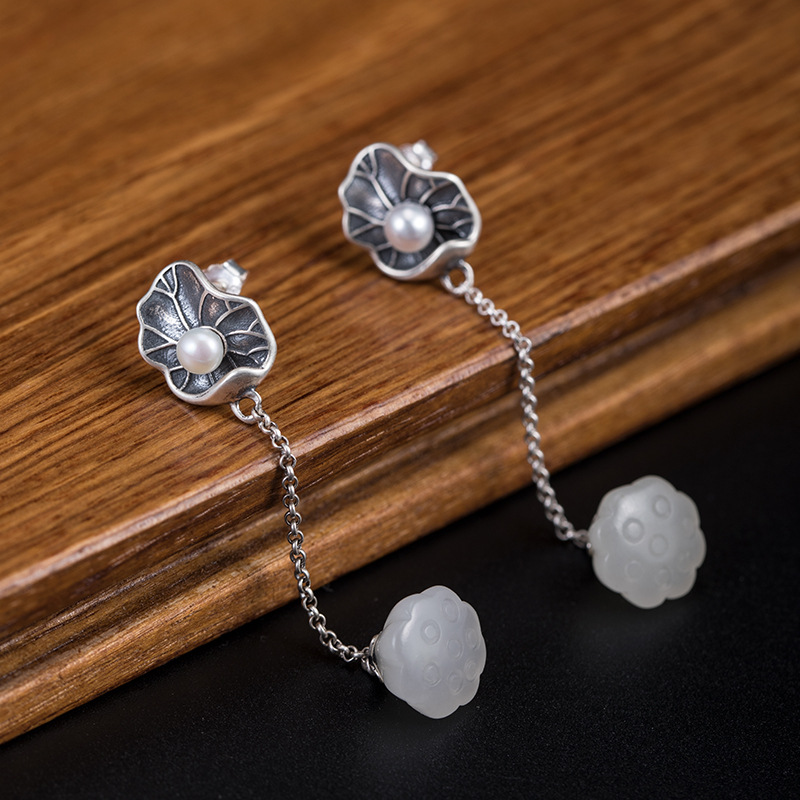 Color: Lotus Leaf Pearl Hetian jade lotus seedpod earrings