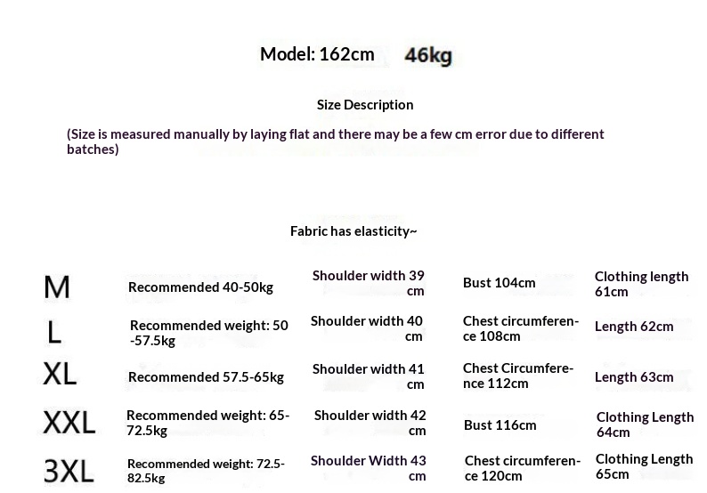 1. Asian sizes are 1 to 2 sizes smaller than European and American people. Choose the larger size if your size between two sizes. Please allow 2-3cm differences due to manual measurement. 2. Please check the size chart carefully before you buy the item, if you don't know how to choose size, please contact our customer service. 3.As you know, the different computers display colors differently, the color of the actual item may vary slightly from the following images.