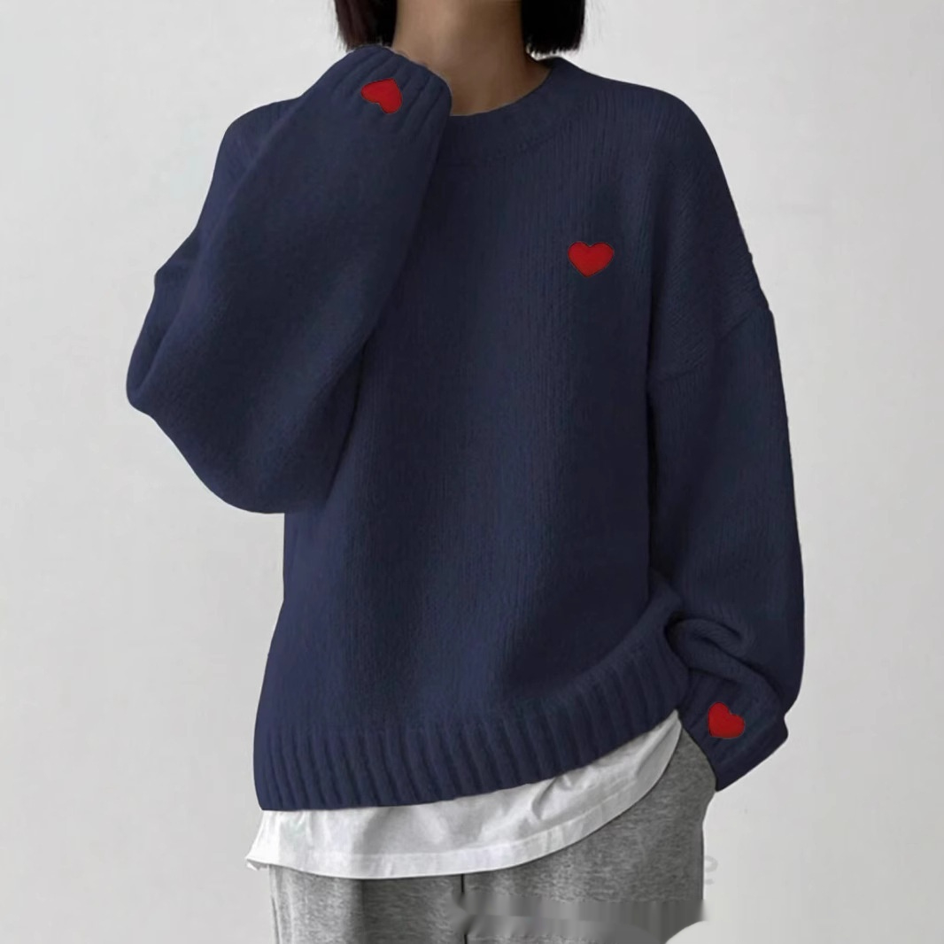 Love Embroidered Crew Neck Sweater Pullover Sweater