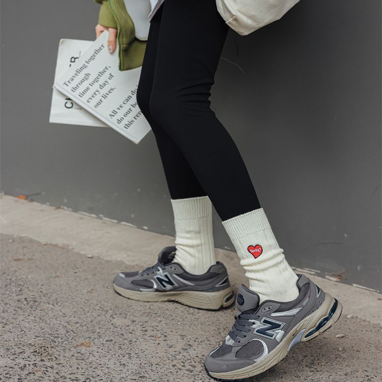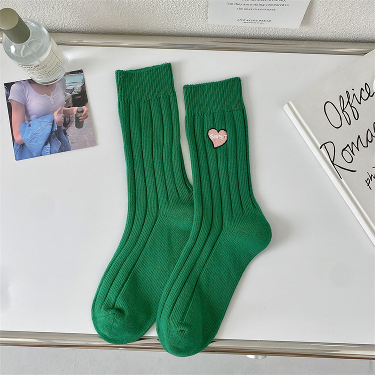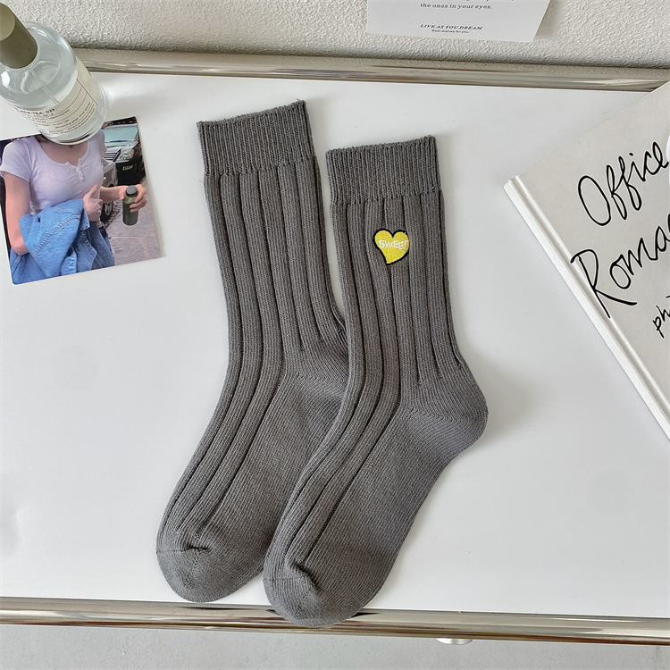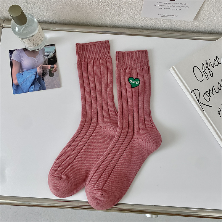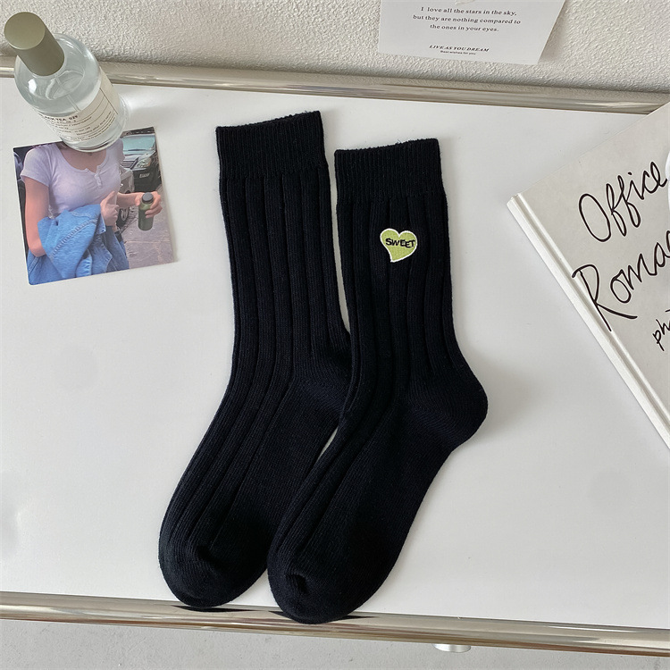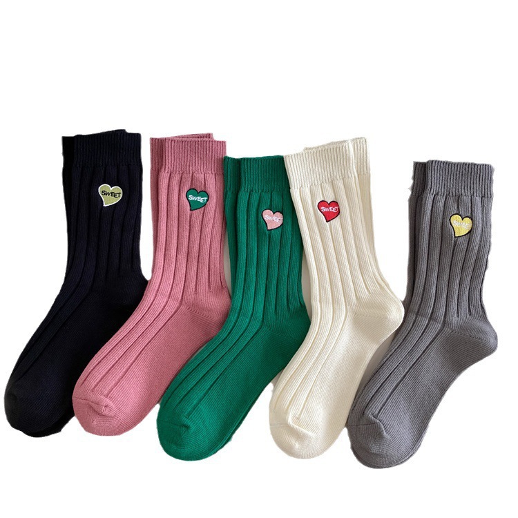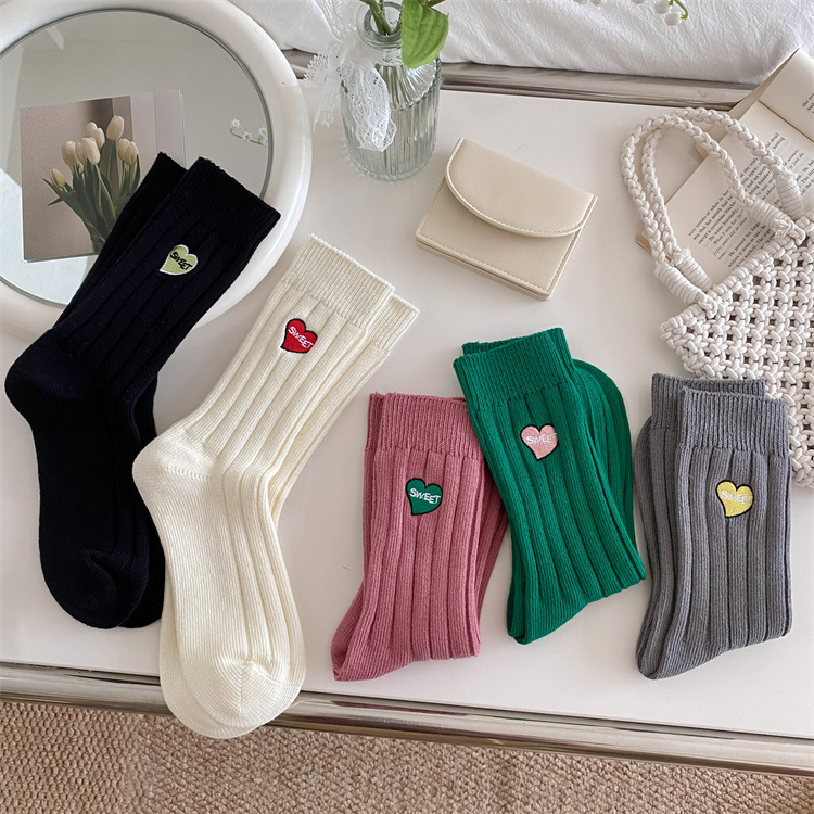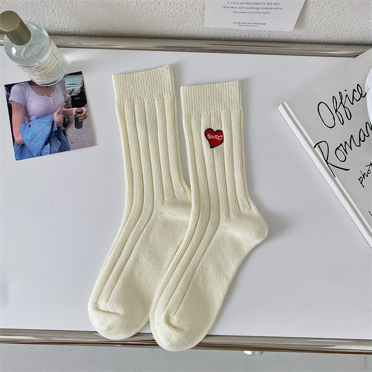 Love Embroidery Women's Mid Tube Stockings Fashion Preppy Style