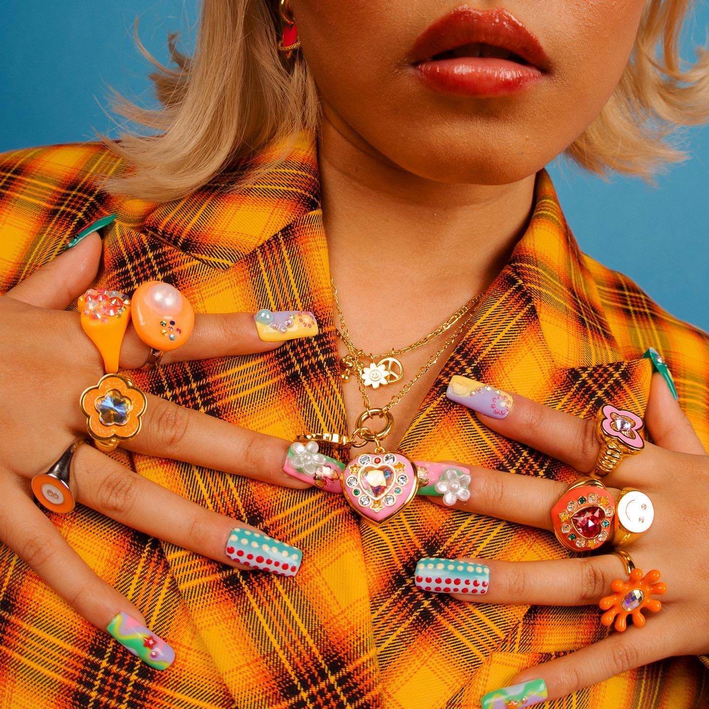 Color: golden love (pendant -O chain), golden love (snake bone chain+pendant), colored diamond pentagram (green), colored diamond pentagram (purple).
