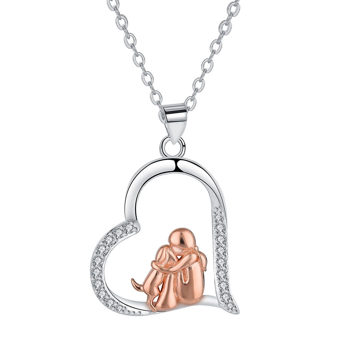 Love Guardian Pendant Girl And Dog Necklace