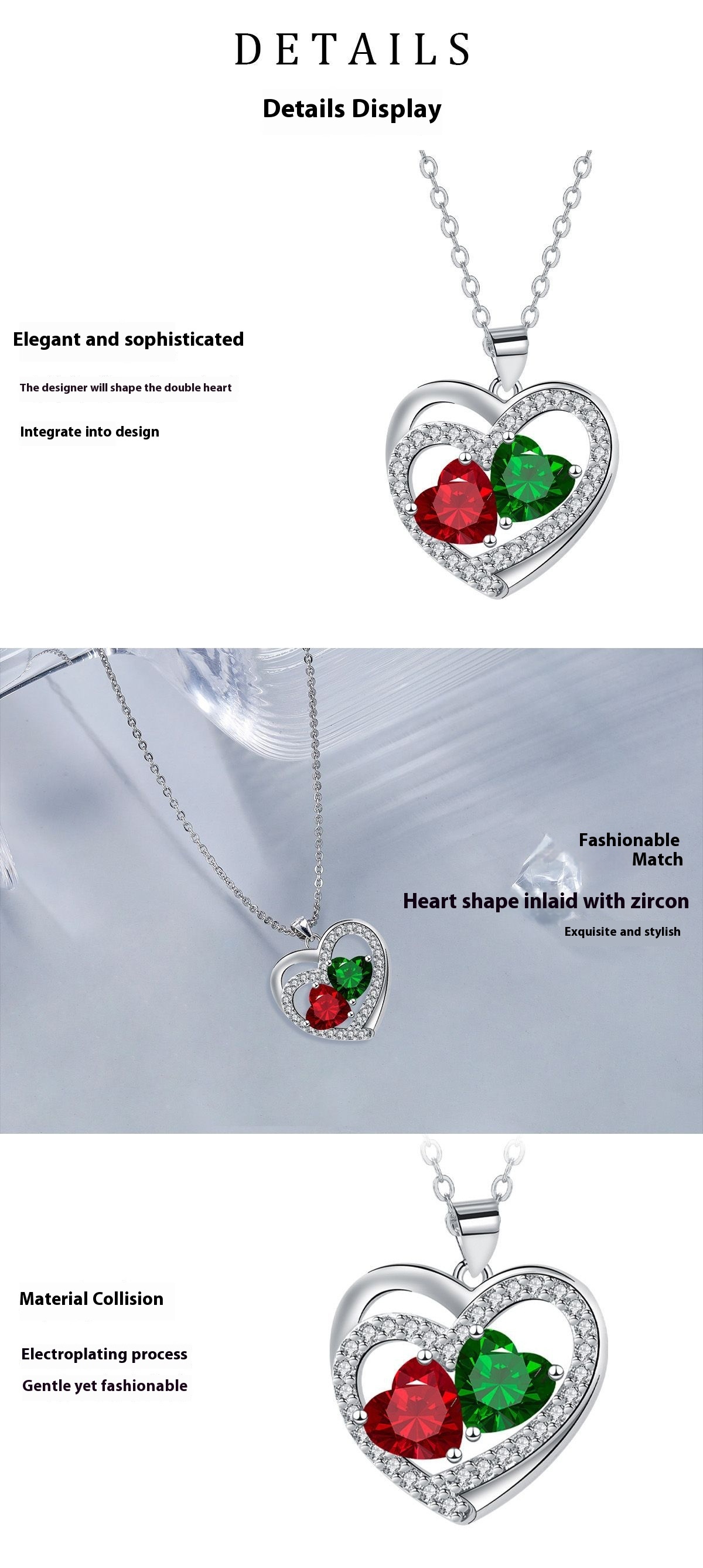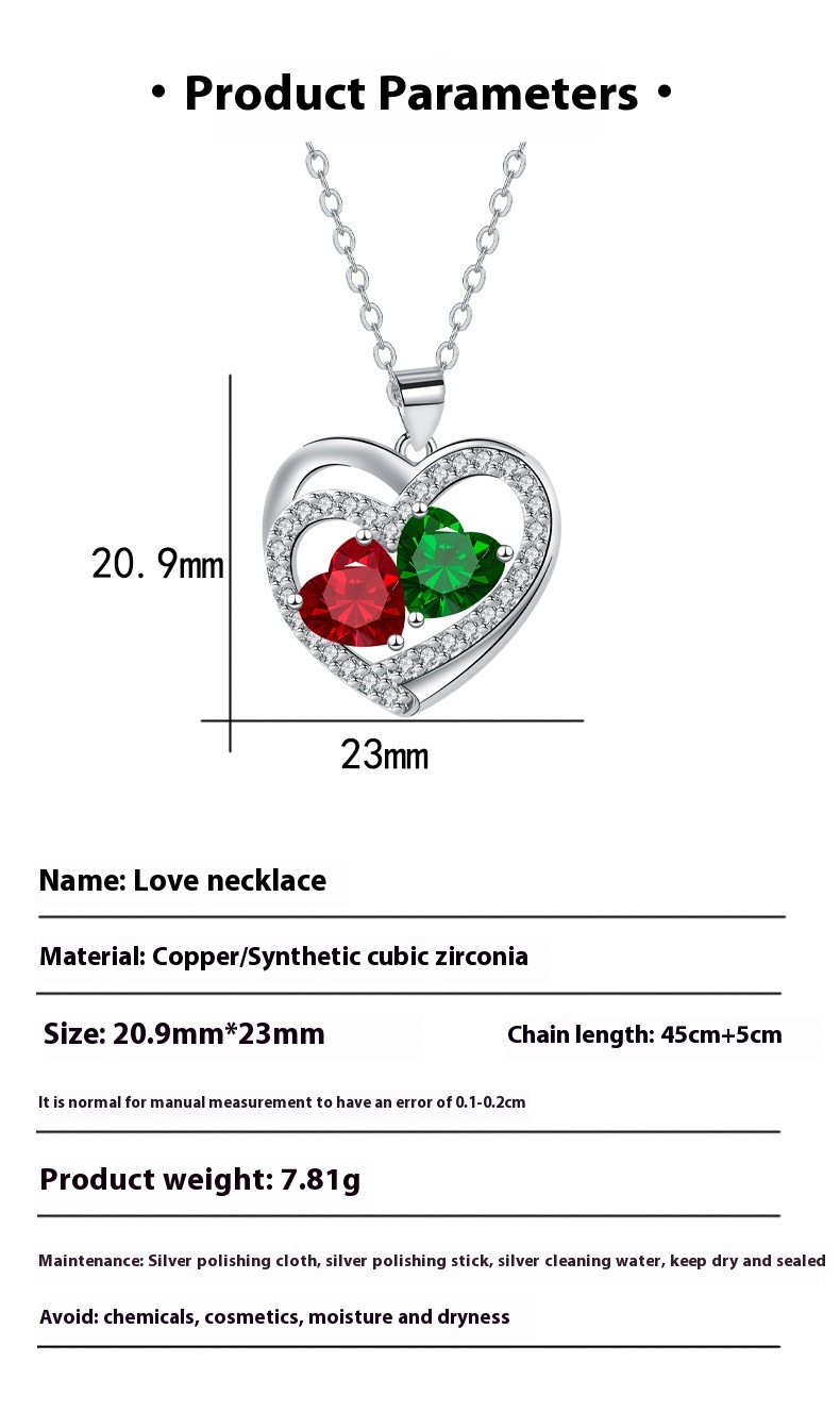 Love In The Heart Pendant Heart-shaped Inlaid Necklace For Women