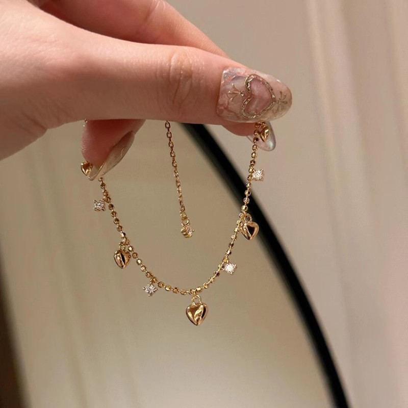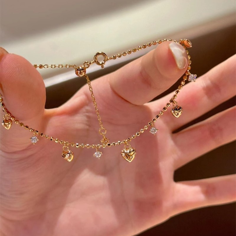 Color: gold heart bracelet, silver heart bracelet