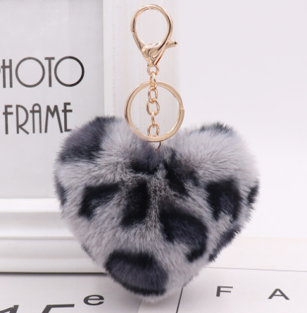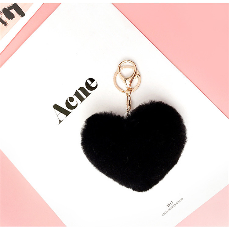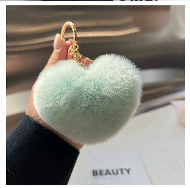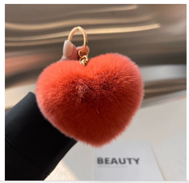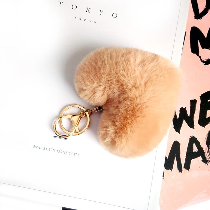 Love Rex Rabbit Fur Plush Pendant Peach Heart Keychain