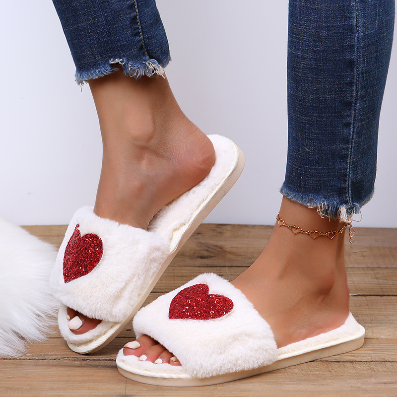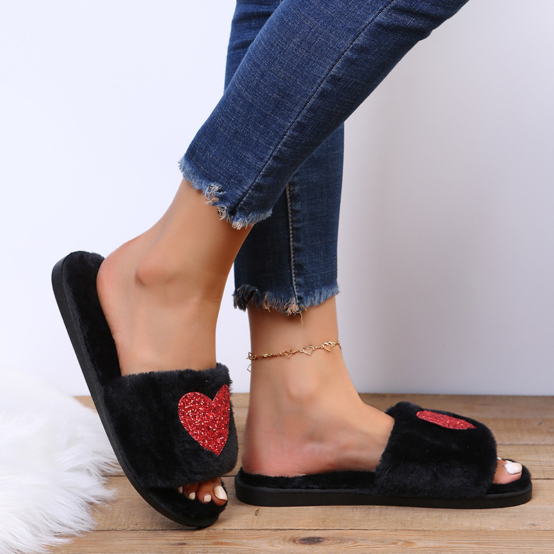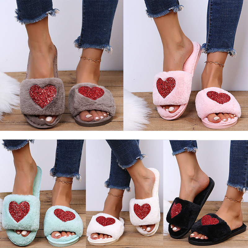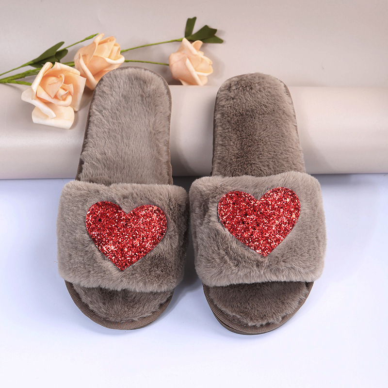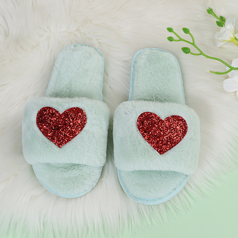 Love Sequin Slippers Winter Indoor Home Shoes Woemen Bedroom Slippers