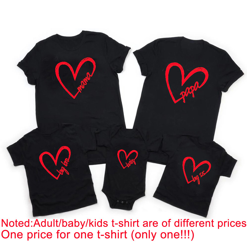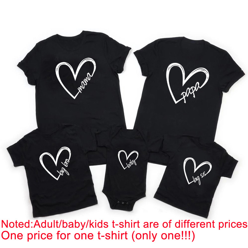 Color: mama black and white printing, romper baby black and white printing, papa black and white printing, Big sis T-shirt black and white printing, Big bro black T-shirt white printing