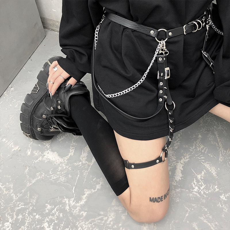 Color: Black belt, leggings leg chain, belt + leg chain combination