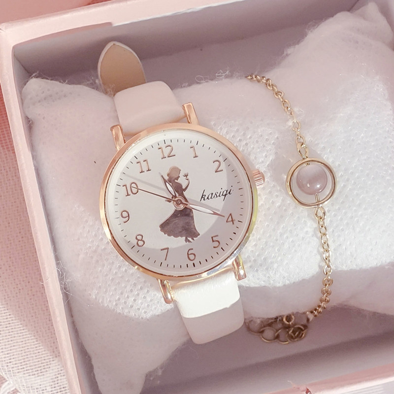 Strap material: Leather dial thickness: 8mm color classification: Black Belt + transfer bead bracelet