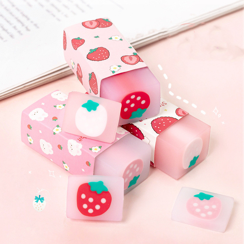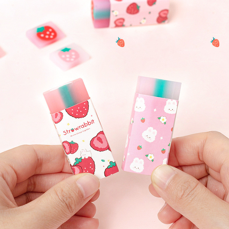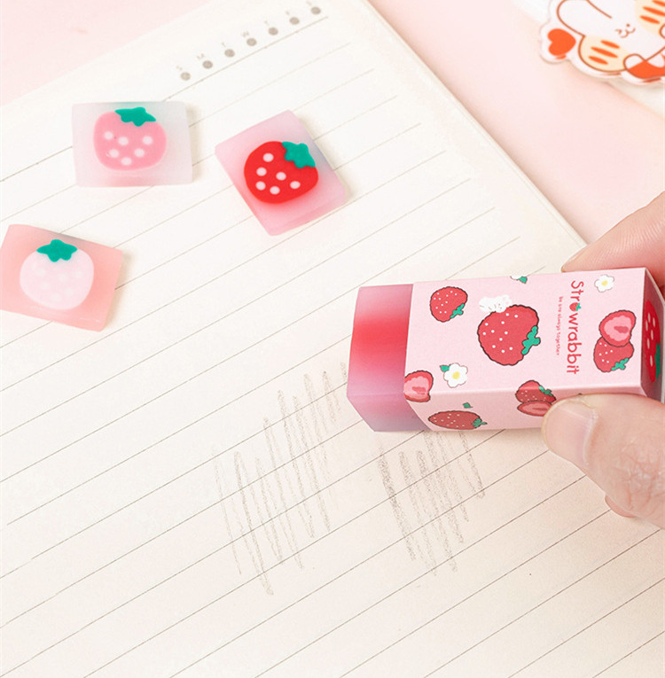 Lovely Strawberry Sandwich Eraser Portable Wipe Clean Eraser Drawing Writing Rubber Student Stationery