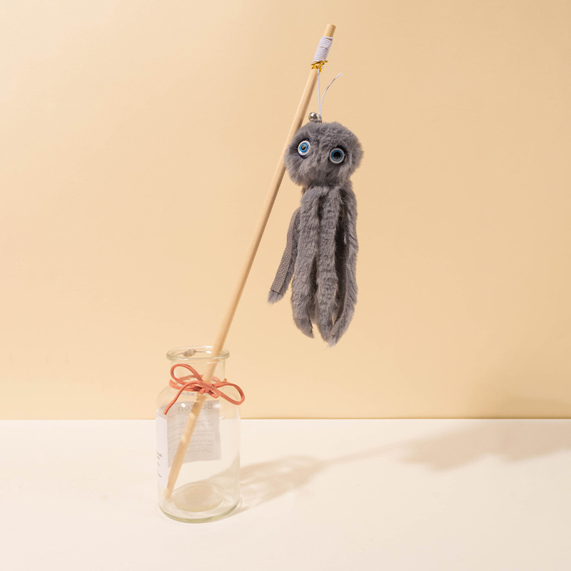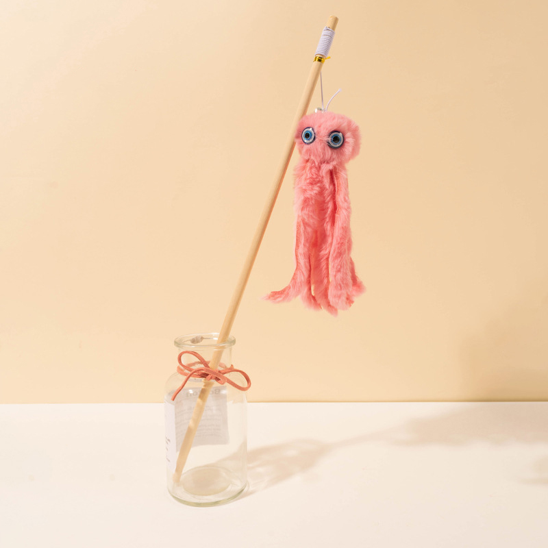 Lovely Toy For Indoor Kitten Cat Furry Octopus Toy With Eyes Long Stick Cat And Kitten Funny Toy