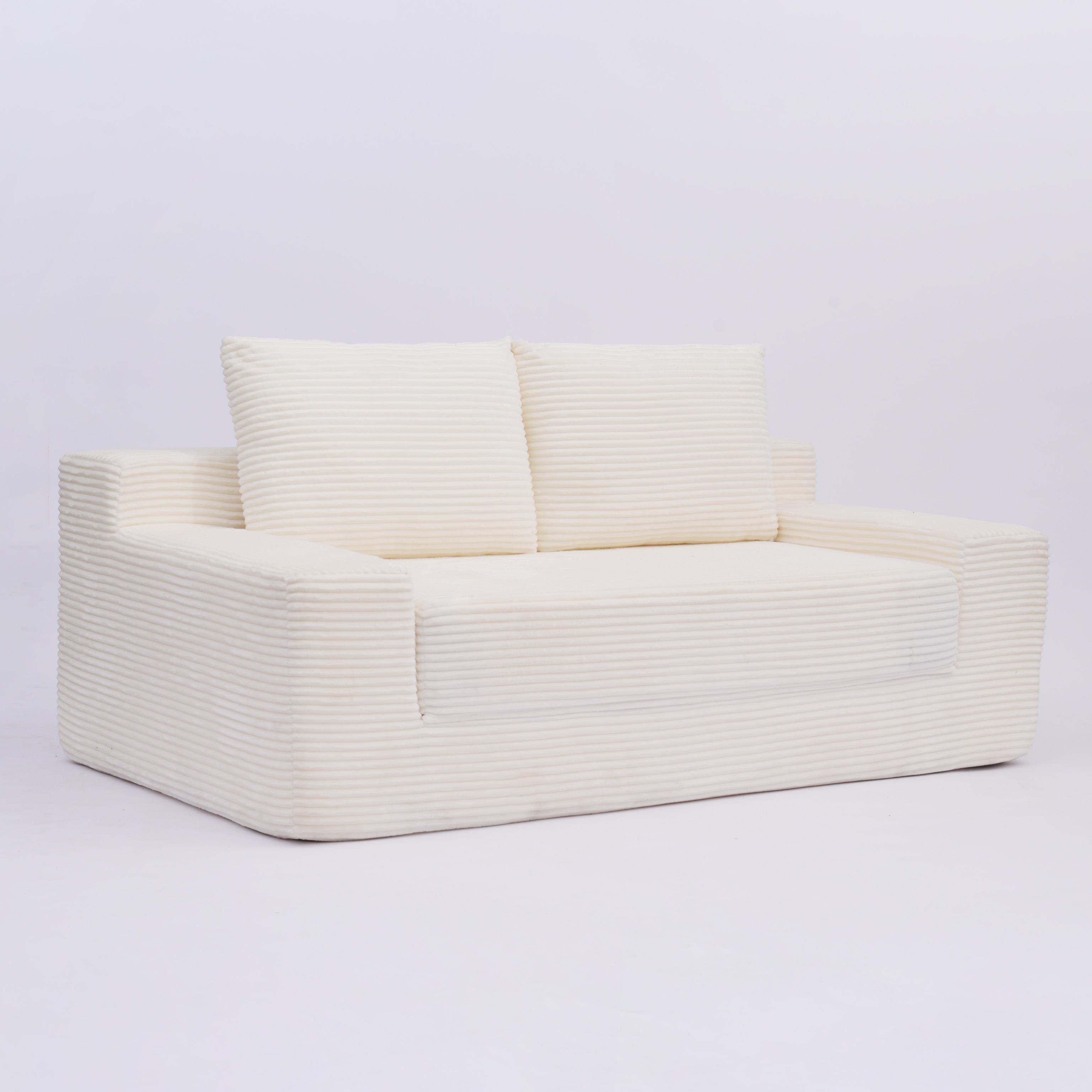 Product Name:Loveseat Sofa, Comfortable Deep Seat Sofa Bed, Modern Small Corduroy Couch for Living Room Bedroom,Reversible Cushion with Pillows,No Assembly Required,White