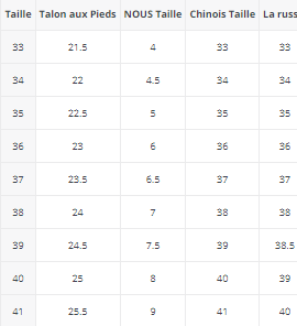 Sizes 35, 36, 37, 38, 39, 40, 41, 42, 43