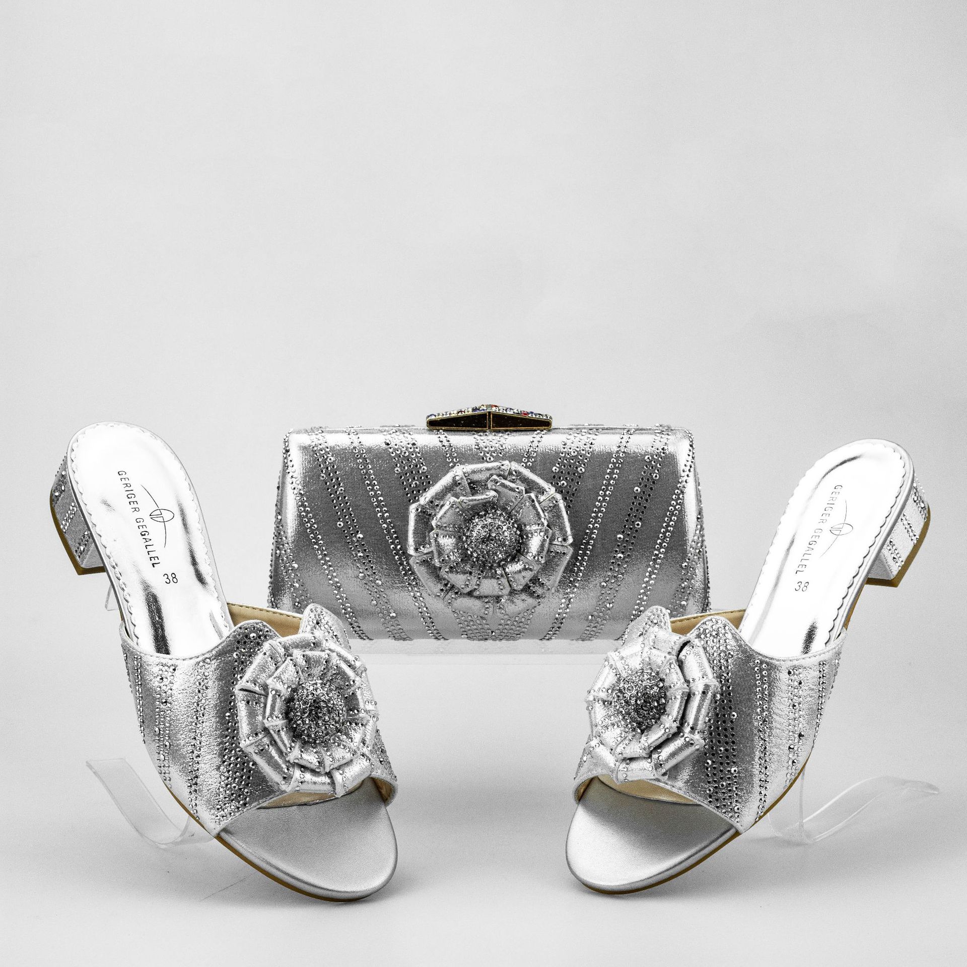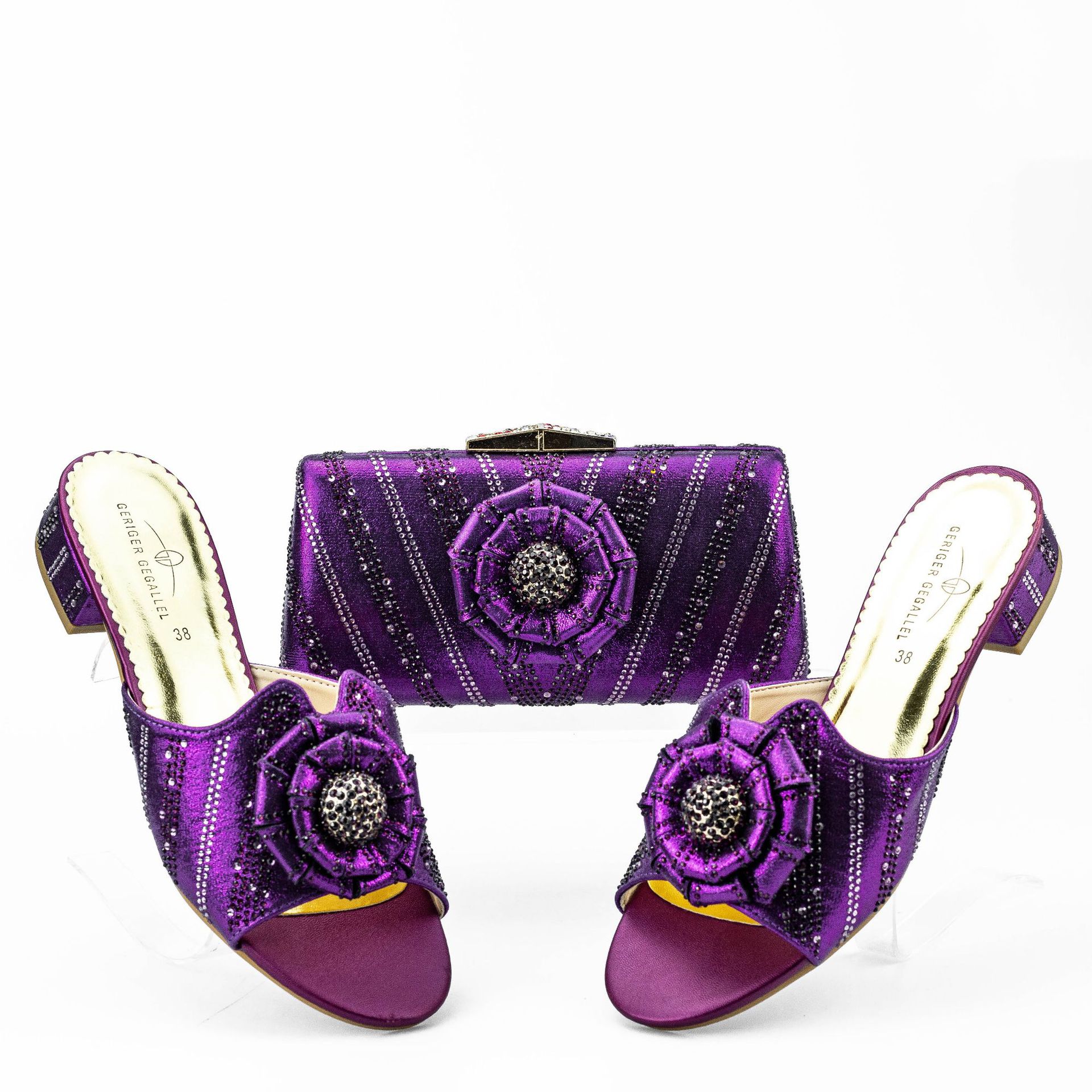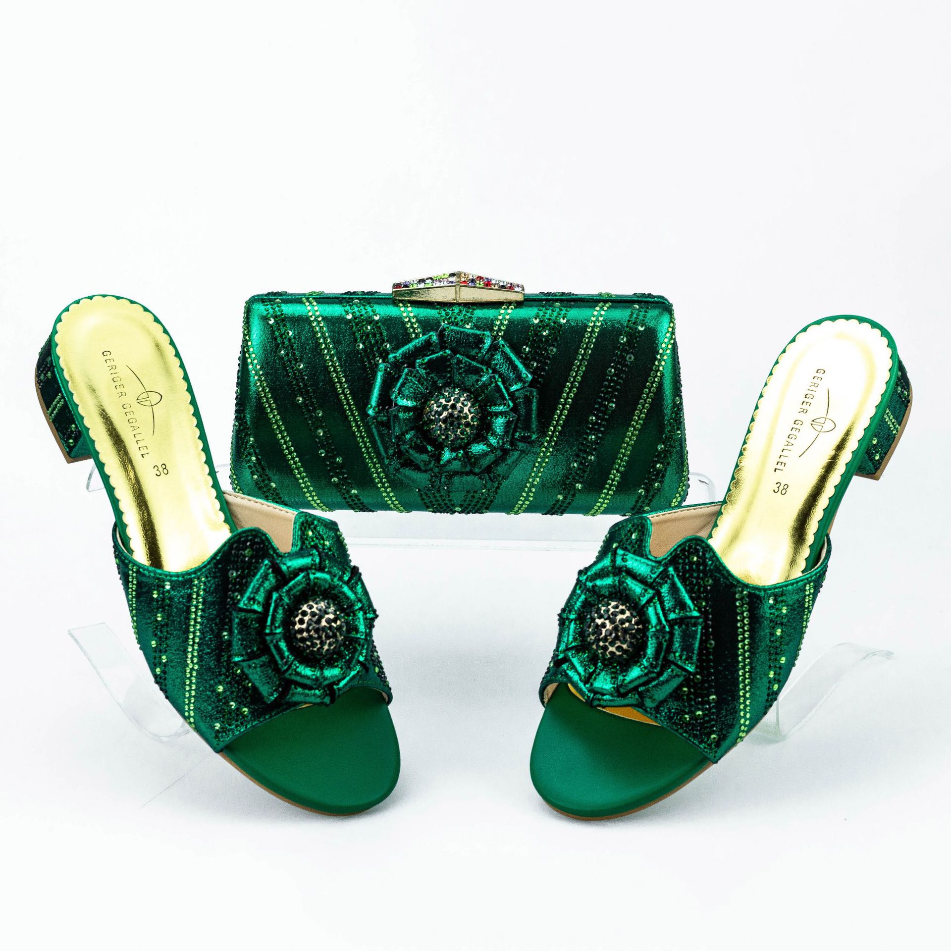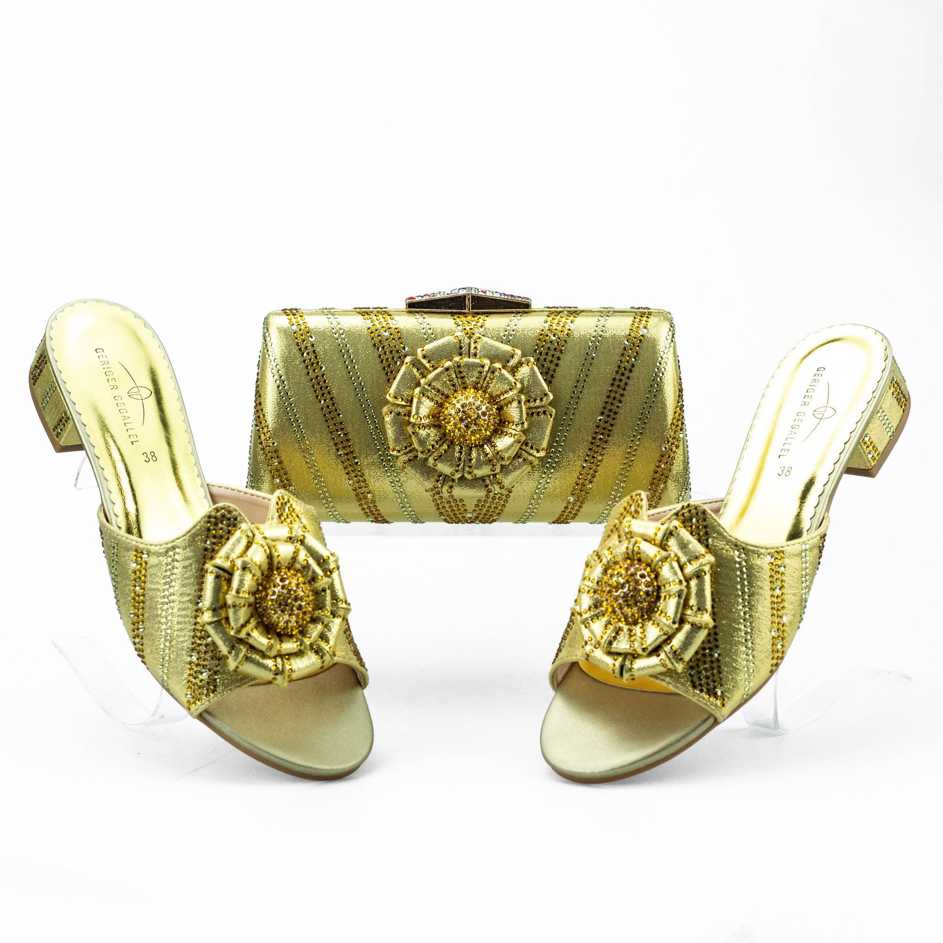 Low Heel Flat Floral Slippers With Same Twill Clutch