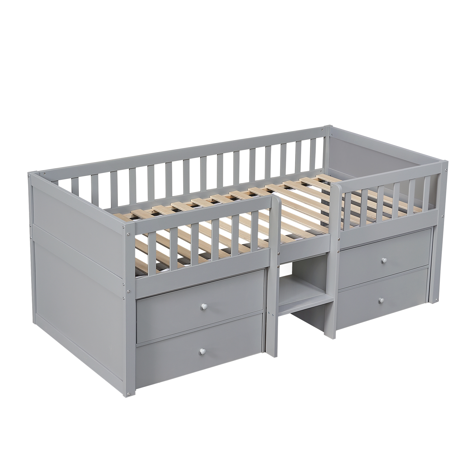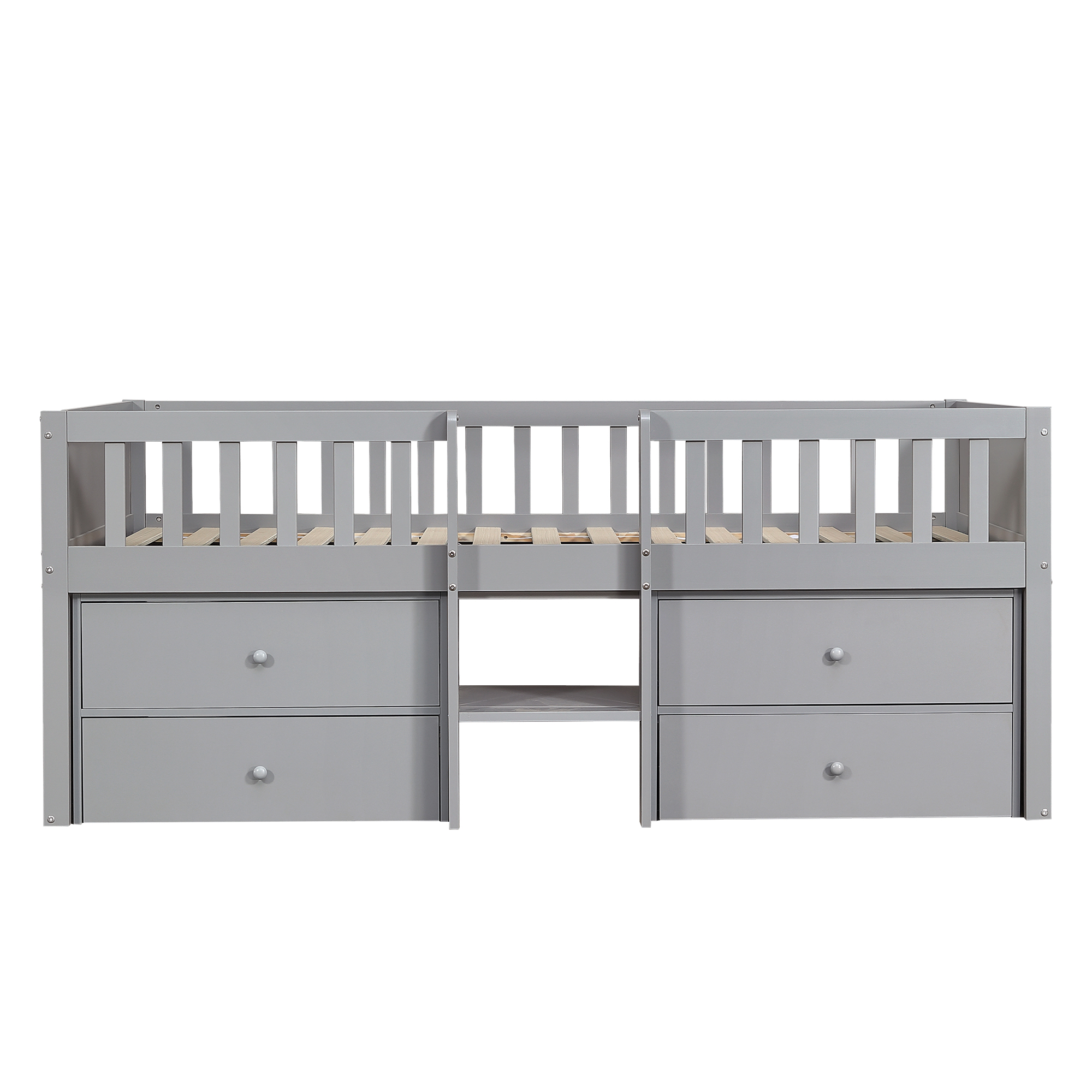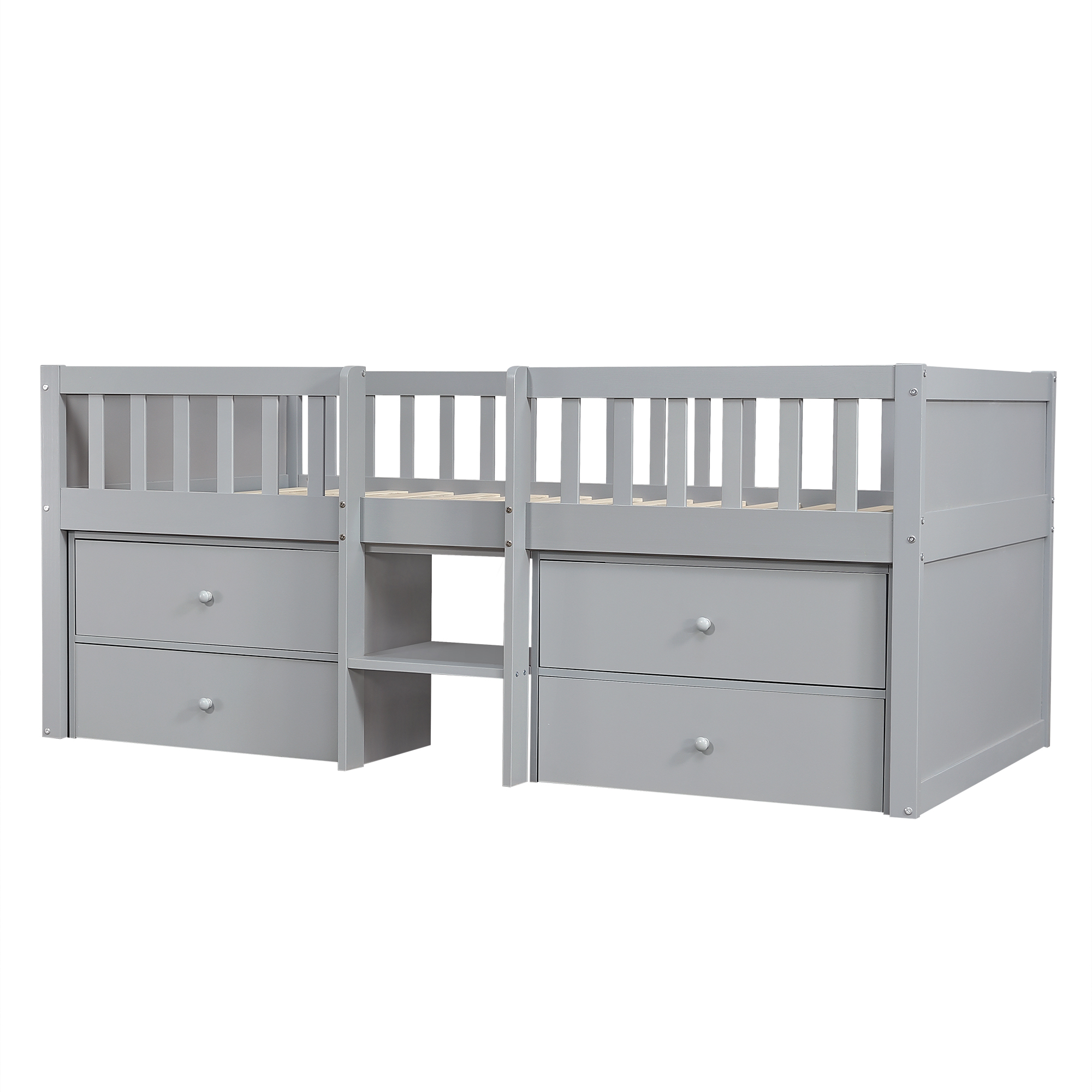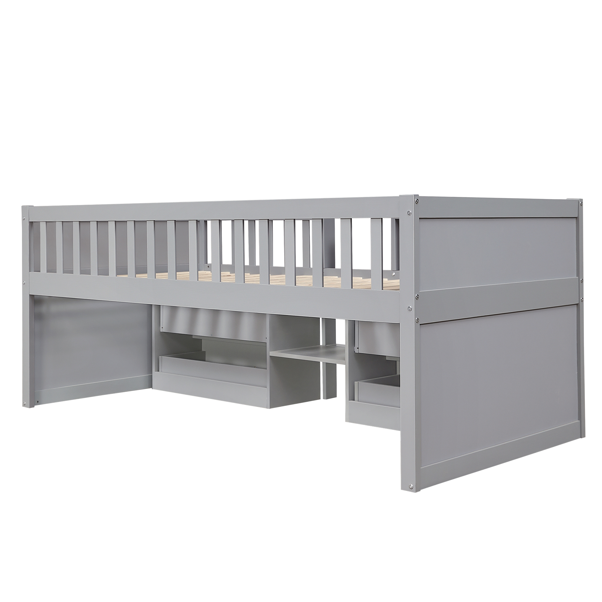 Product Name:Low Loft Bed with Storage, Solid Wood Bed Frame with Drawer Storage, 3ft Single Bed with Guardrail, No Box Spring Needed, Saving-space Design for Bedroom, Modern Bed for Children, Grey (No Mattress)