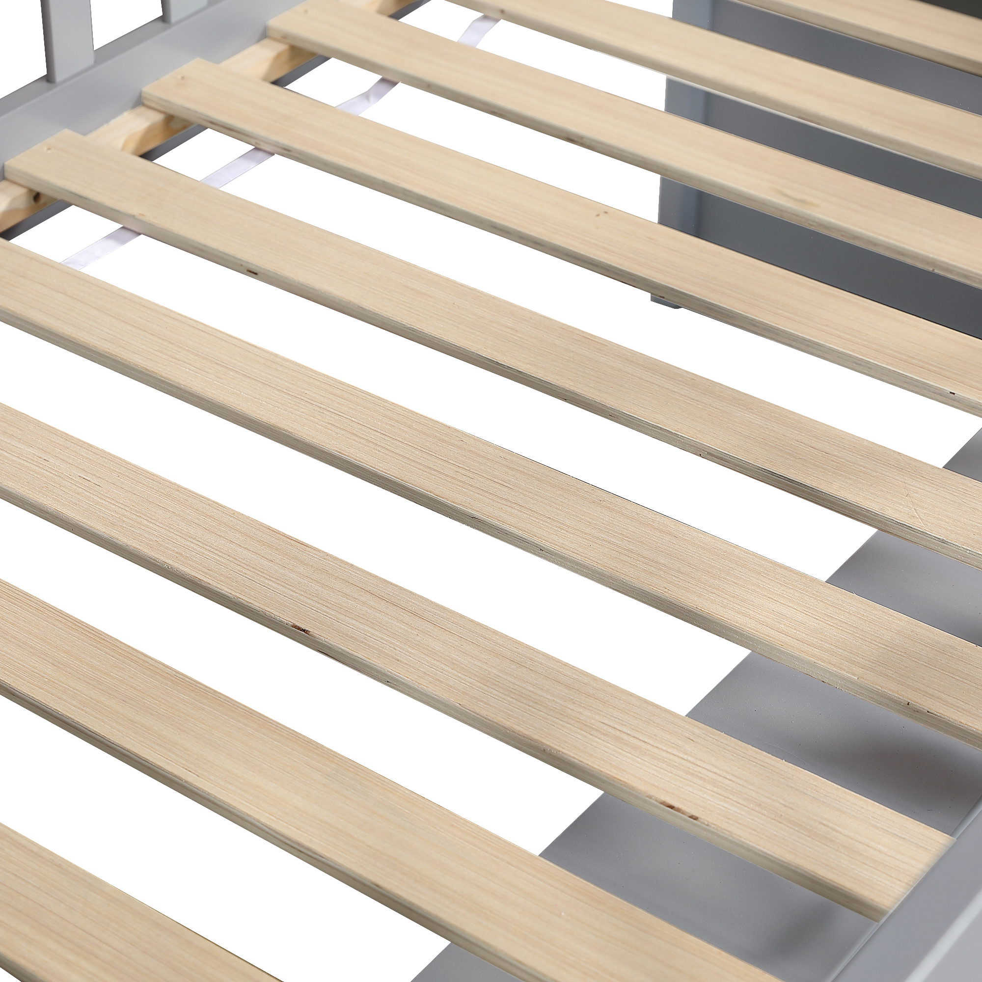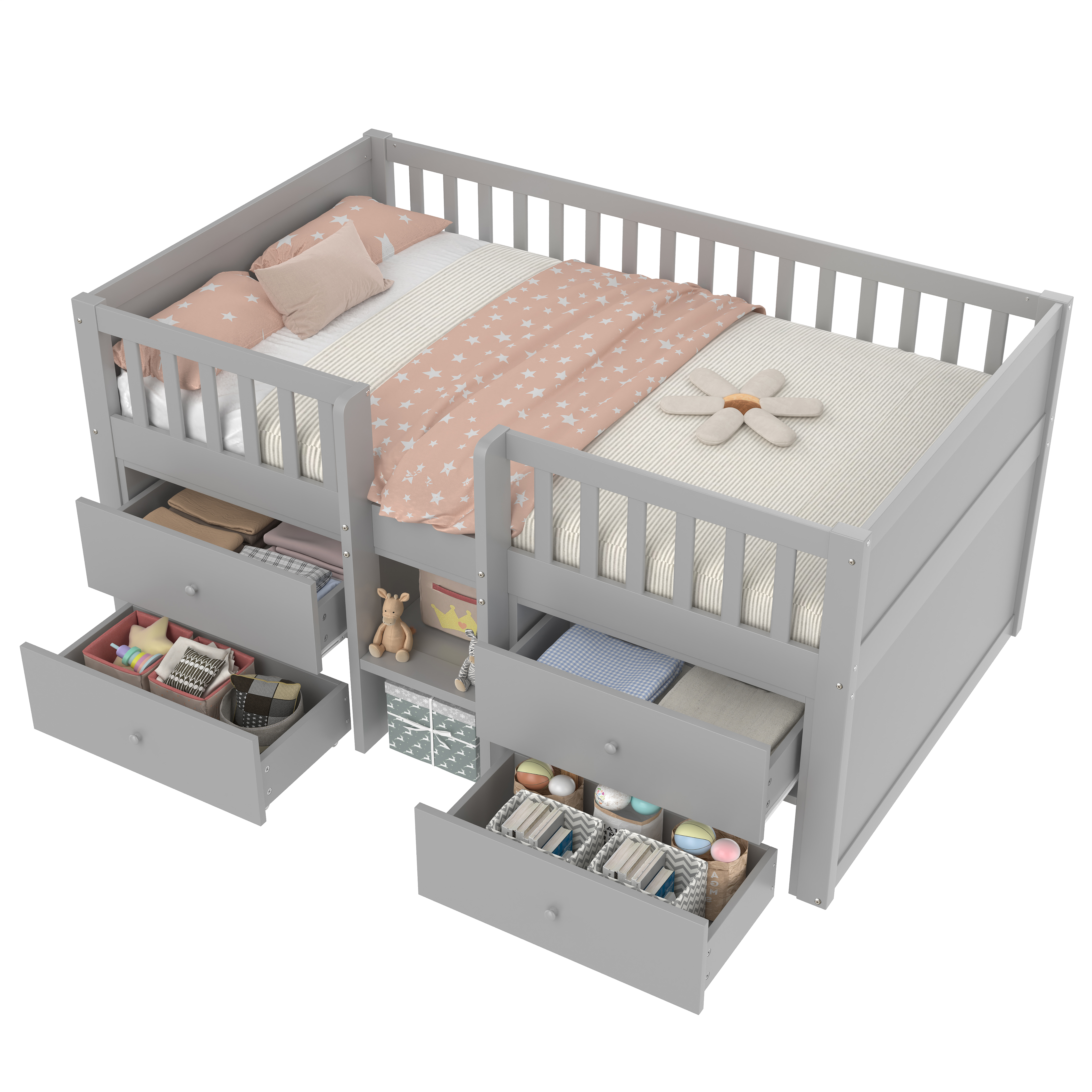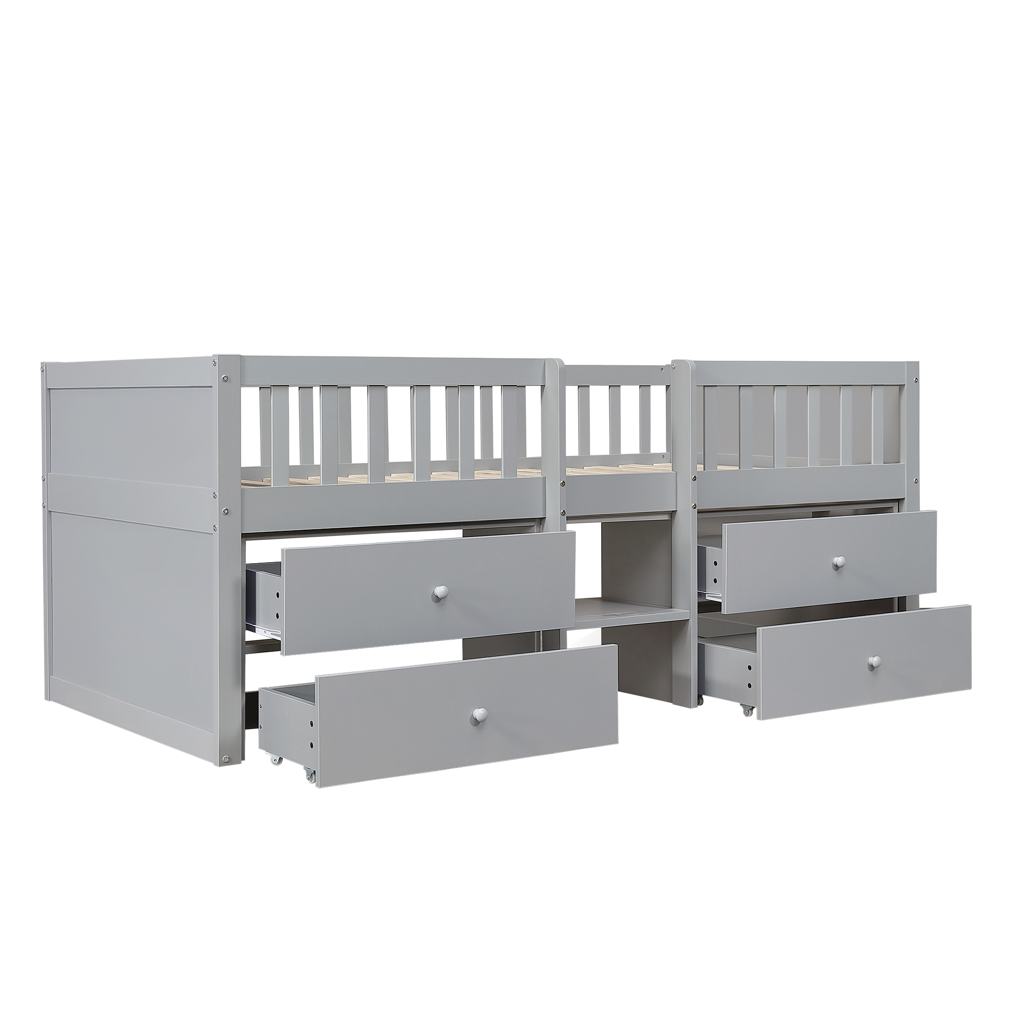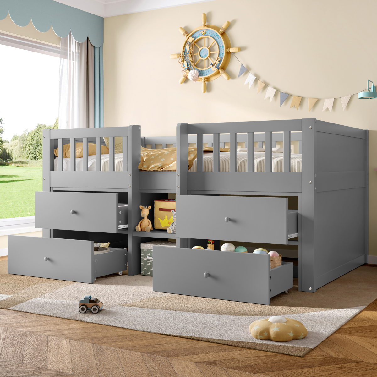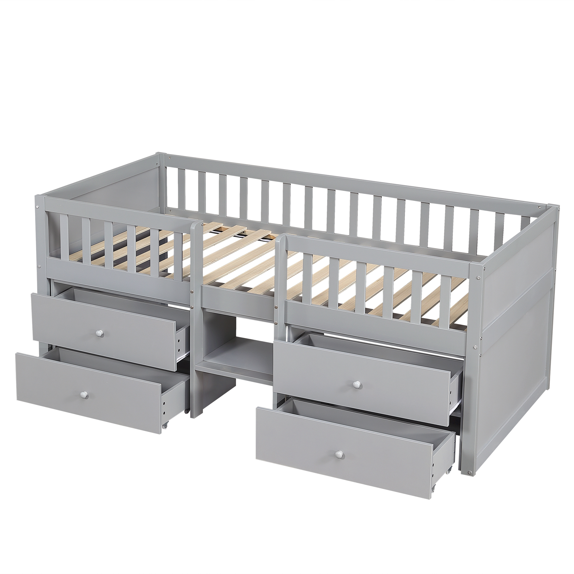 Product Name:Low Loft Bed with Storage, Solid Wood Bed Frame with Drawer Storage, 3ft Single Bed with Guardrail, No Box Spring Needed, Saving-space Design for Bedroom, Modern Bed for Children, Grey (No Mattress)