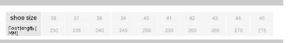 Size: 36, 37, 38, 39, 40, 41, 42, 43, 44, 45